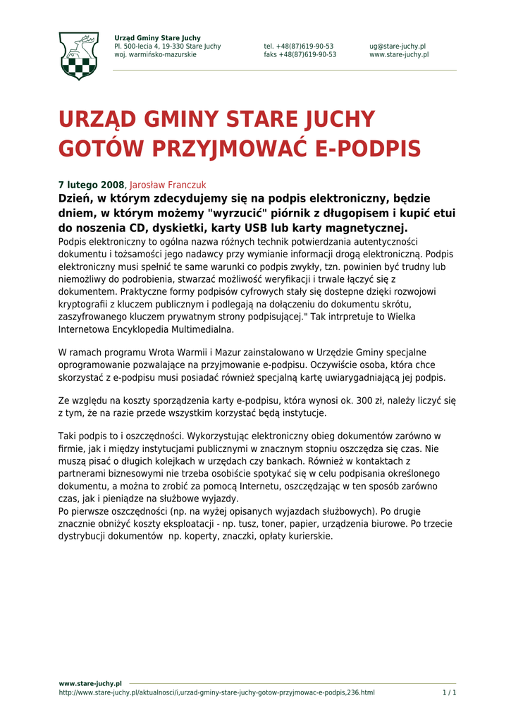 urząd gminy stare juchy gotów przyjmować e-podpis