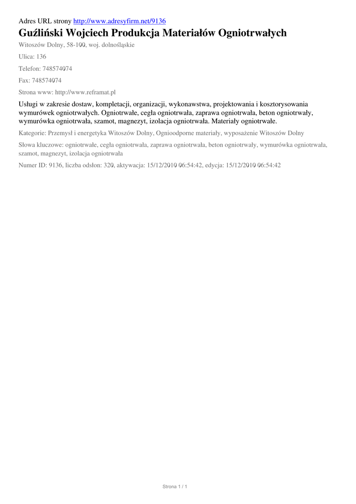 Guzlinski Wojciech Produkcja Materialow Ogniotrwalych, Witoszow
