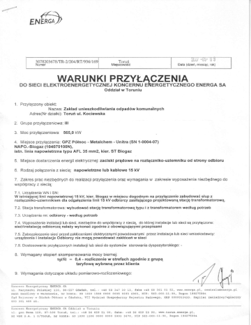 nikiem dla odgalezienialinii 15 kV odbiorcy zasilaj4cegoprojektowan4 stacje transformatorowE.