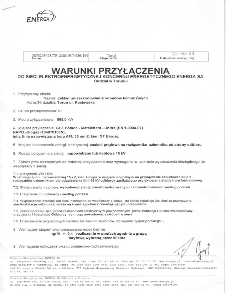 7.4. Wyposazenieinsialacjilub sieci,niezbednedo wsp6lpracyz sieciE,do kt6rejinstalacjelub siecisE przylEczone: