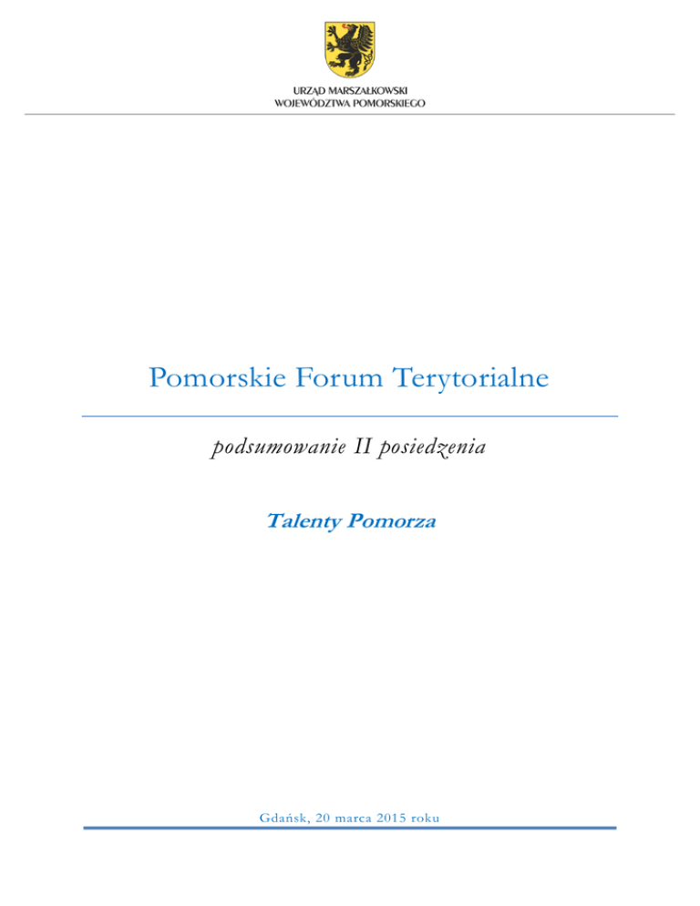 Pomorskie Forum Terytorialne podsumowanie II posiedzenia Talenty Pomorza Gdańsk, 20 marca 2015 roku Pomorskie Forum Terytorialne Drugie spotkanie Pomorskiego Forum Terytorialnego odbyło się 20 marca 2015 roku w Gdańskim Teatrze Szekspirowskim. Uczestniczyli w nim członkowie PFT oraz zaproszeni goście. Główny temat spotkania został sformułowany następująco: Talenty Pomorza. Inicjatorem i moderatorem dyskusji był Marszałek Województwa Pomorskiego Mieczysław Struk. Dyskusja toczyła się wokół trzech prezentacji: Informacja o postępach realizacji Strategii Rozwoju Województwa Pomorskiego 2020 przedstawionej przez Radomira Matczaka – Dyrektora Departamentu Rozwoju Regionalnego i Przestrzennego UMWP, Rozwój kluczowych kompetencji oraz propozycje pozyskania kapitału ludzkiego, w zgodzie z wizją rozwoju Województwa Pomorskiego 2020 przedstawionej przez przedstawicielki firmy Hays Poland – Małgorzatę Jasińską i Jadwigę Naduk, Potencjał młodych Pomorzan na przykładzie projektu Zdolni z Pomorza przedstawionej przez Adama Krawca – Dyrektora Departamentu Edukacji i Sportu UMWP. Informacja o postępach realizacji Strategii Rozwoju Województwa Pomorskiego Informacja jest pierwszym dokumentem przedstawiającym wyniki analizy stanu oraz postępów realizacji Strategii Rozwoju Województwa Pomorskiego 2020 w odniesieniu do sformułowanych w niej celów, na tle zmian społeczno-gospodarczych w regionie. W dyskusji nad Informacją pojawiło się szereg opinii i komentarzy, które można ująć syntetycznie w następujący sposób: W ostatnich latach nastąpił postęp w metodologii planowania strategicznego, „rozpędza się” faza prawdziwego zarządzania rozwojem. Planowanie strategiczne powinno być skorelowane z planowaniem przestrzennym (potrzeba efektu synergii tych dwóch aspektów planowania). 1 Pomorskie Forum Terytorialne Istotne jest zejście w analizach na poziom lokalny, bez skupiania się wyłącznie na porównaniu do średnich krajowych, czy europejskich. Pożądane jest opracowanie planu zarządzania ryzkiem realizacji SRWP 2020, który identyfikowałby zagrożenia i proponował działania zapobiegające lub ograniczające ich skutki. W perspektywie finansowej UE 2014-2020 celem dla Pomorskiego powinno być wyjście z grona regionów najbiedniejszych (PKB per capita na poziomie poniżej 75% średniej UE). Powinna nastąpić zmiana myślenia o środkach europejskich tzn. nietraktowanie ich jako „kroplówki”, ale jako „napędu nitro” dla gospodarki. W perspektywie po 2020 r. nastąpi ograniczenie finansowania z UE, w związku z czym już teraz należy myśleć nad odnalezieniem się w sytuacji bez znaczącej puli środków europejskich. Talenty Pomorza – uzyskany kapitał a utracony potencjał Przed dyskusją sformułowano następujące pytania wywoławcze: Jakie zasoby ludzkie mogą decydować o naszej przewadze konkurencyjnej na tle kraju? Jakich ludzi przyciągamy i jakich „tracimy”; jakich chcemy przyciągać i dlaczego? Jak utrzymać zdolnych, ambitnych ludzi i zaoferować im atrakcyjną ścieżkę rozwoju? Co można zrobić w zakresie edukacji, rynku pracy, gospodarki, by sprzyjać napływowi talentów z zewnątrz i zapobiec odpływowi rodzimych? Talent to zdolność, wrodzone predyspozycje w jakiejś dziedzinie, umiejętność łatwego przyswajania wiedzy. Każdy człowiek posiada jakiś talent, należy go tylko w porę odkryć i rozwijać. Pomorskie posiada uwarunkowania sprzyjające rozwojowi talentów, w tym m.in. najwyższy w Polsce odsetek ludzi w wieku przedprodukcyjnym, znaczny potencjał społeczny, aktywność mieszkańców w dokształcaniu, przedsiębiorczość. Wzrasta atrakcyjność kształcenia na różnych poziomach. Uczniowie mają możliwość zdobywania nowych umiejętności i kwalifikacji oraz stypendiów, powstają nowe kierunki studiów, przybywa studentów z zagranicy. Prowadzonych jest szereg działań mających na celu odkrywanie i rozwijanie rodzimych talentów. Często ich inicjatorem i realizatorem są samorządy czy organizacje pozarządowe. Z drugiej strony, zauważalne są problemy: emigracja młodych, zdolnych mieszkańców, zjawisko drenażu mózgów (brain drain) oraz marnotrawienia mózgów (brain waste). W dyskusji poruszono m.in. następujące wątki: Biznes zwraca uwagę nie tyle na talenty, co na kompetencje potencjalnych pracowników. Kapitał będzie tworzył miejsca pracy, ale w korzystnych dla siebie lokalizacjach definiowanych przez dostępność (ilość, jakość) zasobów ludzkich. 2 Pomorskie Forum Terytorialne W wielu przypadkach kadra zarządzająca największych lokujących się w regionie firm pochodzi z zewnątrz. Są to często menadżerowie z bardzo wysokimi kompetencjami, którzy mają potencjał, by podźwignąć lokalne firmy na wyższy poziom. Powinien powstać regionalny mechanizm przyciągania takich menadżerów (wraz z bliskimi), który wzmocniłby pozytywną tendencję rynkową, zgodnie z którą zwłaszcza Obszar Metropolitalny Trójmiasta ma coraz większą zdolność przyciągania wysoko wykwalifikowanych pracowników z zewnątrz. Talenty potrzebne są również w małym biznesie. Wciąż istnieje jednak szereg barier utrudniających ich transfer do MŚP, które nie zawsze potrafią zidentyfikować potrzeby kompetencyjne pracowników, nie są wewnętrznie przygotowane do wykorzystania możliwości osób wyróżniających się oraz często nie potrafią ich odpowiednio motywować. Skuteczne wykorzystanie talentów wiąże się bowiem m.in. z koniecznością większego różnicowania wynagrodzeń, a to wymaga akceptacji społecznej. Należy myśleć nie tylko o talentach na miarę regionalną, globalną, ale też lokalną. Dla małych społeczności talenty są potrzebne, gdyż często inicjują i realizują ważne z punktu widzenia lokalnych interesów zmiany i działania rozwojowe. Konkurencyjne zasoby ludzkie powstają m.in. za sprawą kształcenia zawodowego, które