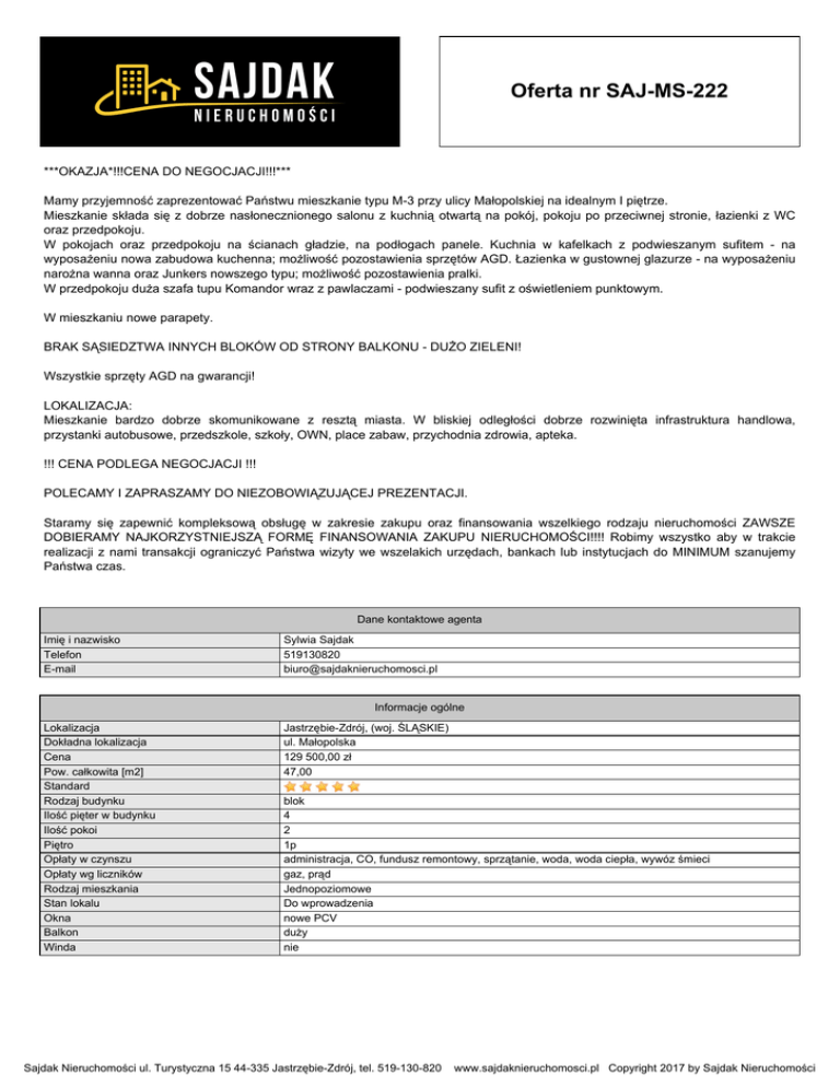 Oferta nr SAJ-MS-222 - Sajdak Nieruchomości
