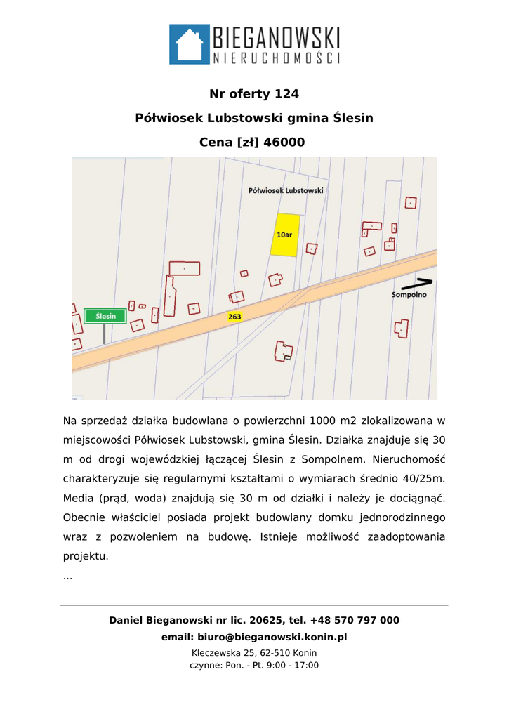 Nr oferty 124 Półwiosek Lubstowski gmina Ślesin Cena [zł] 46000