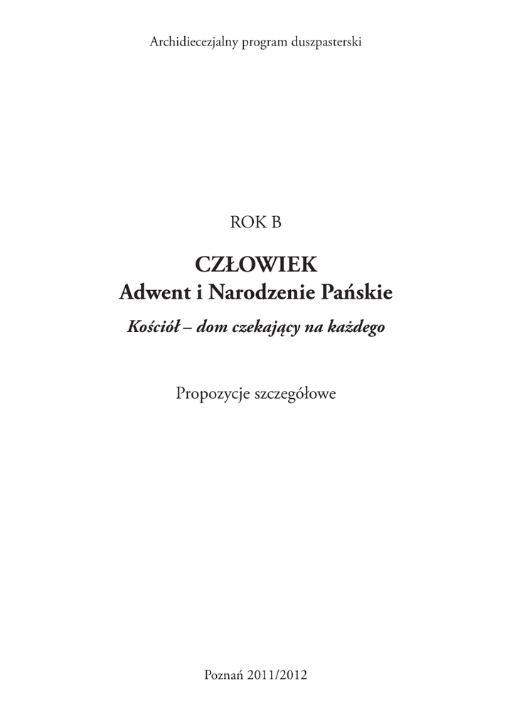 Archidiecezjalny program duszpasterski ROK B Człowiek Adwent i Narodzenie Pańskie Kościół – dom czekający na każdego Propozycje szczegółowe Poznań 2011/2012 9 10 MARTYRIA Kościół naszym domem Sobór Watykański II naucza, że „podobało się jednak Bogu uświęcić i zbawiać ludzi nie pojedynczo, z wykluczeniem wszelkiej wzajemnej między nimi więzi, lecz uczynić z nich lud, który by Go poznawał w prawdzie i zbożnie Mu służył” (Konstytucja dogmatyczna o Kościele, KK 9). W drugim roku realizacji Programu duszpasterskiego, którego hasłem są słowa: Kościół domem i szkołą komunii, podejmujemy działalność pastoralną w myśl słów: Kościół naszym domem. W minionym roku uświadomiliśmy sobie, że chrześcijanin winien najpierw dziękować Bogu za dar komunii, a potem nieustannie troszczyć się o pogłębianie więzi z Bogiem. Na fundamencie komunii z Bogiem chcemy budować wspólnotę sióstr i braci w tej samej wierze. Adwent i okres Narodzenia Pańskiego to czas na pogłębienie prawdy, że Kościół jest domem czekającym na każdego. Bóg posłał na świat swojego Syna, by każdy człowiek mógł przyjąć Jezusa, by mógł Go poznać, umiłować i naśladować. Przepowiadajmy tę prawdę, zachęcając do uwielbiania Boga za Jego niezmierzone dary. Własne miejsce w Kościele Kościół jest domem, do którego przynależy się przez łaskę chrztu świętego. To dom żywy, pełny Bożej obecności, czekający na każdego, kto chce budować relację z Jezusem. Tu każdy człowiek dobrej woli może znaleźć swoje miejsce. Każdy chrześcijanin, dzięki łasce Bożej, powinien odkrywać swoje życiowe powołanie i podjąć się jego realizacji. Człowiek bez relacji z Kościołem doświadcza bezdomności duchowej. Każdy człowiek potrzebuje wsparcia w odkrywaniu swojego powołania i miejsca w Kościele. To szczególne zadanie domu rodzinnego, wspólnoty parafialnej oraz duszpasterzy. Okresy Adwentu i Narodzenia Pańskiego pomagają nam na nowo przeżyć tę prawdę, że Bóg posłał swojego Syna na świat, by zbawił wszystkich ludzi. To czas na odnawianie i budowanie relacji komunijnych w rodzinach. Własne miejsce w świątyni Osoby uczestniczące regularnie w Eucharystii mają zazwyczaj swoje miejsce w kościele. To dobry znak, na który warto zwracać uwagę – mieć swoje miejsce przy ołtarzu Pana. Bardzo czytelna staje się tu analogia do domu rodzinnego i własnego miejsca przy stole. Świątynia jest domem Boga zbudowanym po to, by Bóg mógł w niej spotkać się ze swoim ludem. 11 Przygotowanie do bierzmowania Co roku w każdej parafii przygotowujemy młodzież do przyjęcia sakramentu bierzmowania. Dobrze, jeśli spotkania młodych odbywają się w małych grupach (7-9 osób), prowadzonych przez animatorów rekrutujących się z osób dorosłych lub starszej młodzieży. Animatorzy, dzielący się z kandydatami do bierzmowania swoim doświadczeniem Boga, świadczą o swojej osobistej komunii z Bogiem oraz o współodpowiedzialności za przekaz wiary w parafii. Taki przykład ludzi świeckich jest bardzo potrzebny, by młodzi mogli zrozumieć, że Kościół jest ich domem. Katecheza dorosłych Kontynuujemy publikację 12 katechez dla dorosłych, przeznaczonych do wykorzystania w parafii. Tematyka katechez nawiązuje do tematu roku. Materiały są skierowane zarówno do grup, które wymagają stałej formacji, jak i do osób dorosłych, pragnących uczestniczyć w systematycznej katechezie. Spotkania pomogą w zrozumieniu Kościoła jako domu, w którym panuje komunia (patrz: Synod Archidiecezji Poznańskiej 2004-2008, T. 1: Dokumenty, 552, 826). Szkoła Katechistów Archidiecezji Poznańskiej Szkoła Katechistów Archidiecezji Poznańskiej kontynuuje swoją pracę formacyjną. Jej absolwenci, świeccy katechiści, poprowadzą w parafiach katechezy adresowane do ludzi dorosłych. Ukazał się już pierwszy tom materiałów katechetycznych: Chrzest. Przygotowanie rodziców i chrzestnych do sakramentu chrztu świętego dzieci, Poznań 2011. Szkoła Formacji Duchowej Pomocą w pogłębieniu życia duchowego osób dorosłych jest Szkoła Formacji Duchowej, która rozpoczęła czwarty rok swojej działalności. Zachęcajmy wiernych do uczestnictwa w tych spotkaniach. Często w ramach propozycji parafialnych nie jesteśmy w stanie zapewnić tak pogłębionej formacji, jaką proponuje ta szkoła. Kształtowanie duchowości biblijnej W tym roku Dzieło Biblijne im. Jana Pawła II w Archidiecezji Poznańskiej poszerzyło swoją ofertę edukacyjną o Studium Biblijno-Patrystyczne z elementami archeologii biblijnej skierowane do katechetów, nauczycieli języka polskiego oraz osób zainteresowanych poszerzeniem wiedzy z zakresu teologii biblijnej i patrystyki. Formacja prowadzona przez Dzieło Biblijne cieszy się dużym zainteresowaniem. Wykorzystujmy w pracy duszpasterskiej czasopisma: „Krąg Biblijny”, 12 „Przegląd Biblijny”, które można potraktować jako materiały wspierające realizację Archidiecezjalnego programu duszpasterskiego (patrz: Synod Archidiecezji Poznańskiej 2004-2008, T. 1: Dokumenty, 149). Roczna Szkoła Ewangelizacji Już piąty rok działa Roczna Szkoła Ewangelizacji. Tym razem formacja będzie prowadzona w dwóch miejscach archidiecezji, poza Poznaniem. Takie rozwiązanie ma na celu łatwiejsze dotarcie do wiernych z różnych części archidiecezji. Cztery lata formacji zaowocowały już liczną grupą absolwentów, którzy mogą pomagać kapłanom w pełnieniu misji ewangelizacyjnej w parafiach (patrz: Synod Archidiecezji Poznańskiej 2004-2008, T. 1: Dokumenty, 534-553). Kolędnicy misyjni W niewielu parafiach archidiecezji poznańskiej istnieją grupy kolędników misyjnych. Dzieci (w towarzystwie osoby dorosłej) niosą parafianom życzenia i Boże błogosławieństwo, zbierając równocześnie ofiary na potrzeby misji. W tym roku (2012) będziemy wspierać chrześcijan w Sudanie. Zaangażowanie dzi