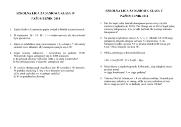 SZKOLNA LIGA ZADANIOWA KLASA IV PAŹDZIERNIK 2014
