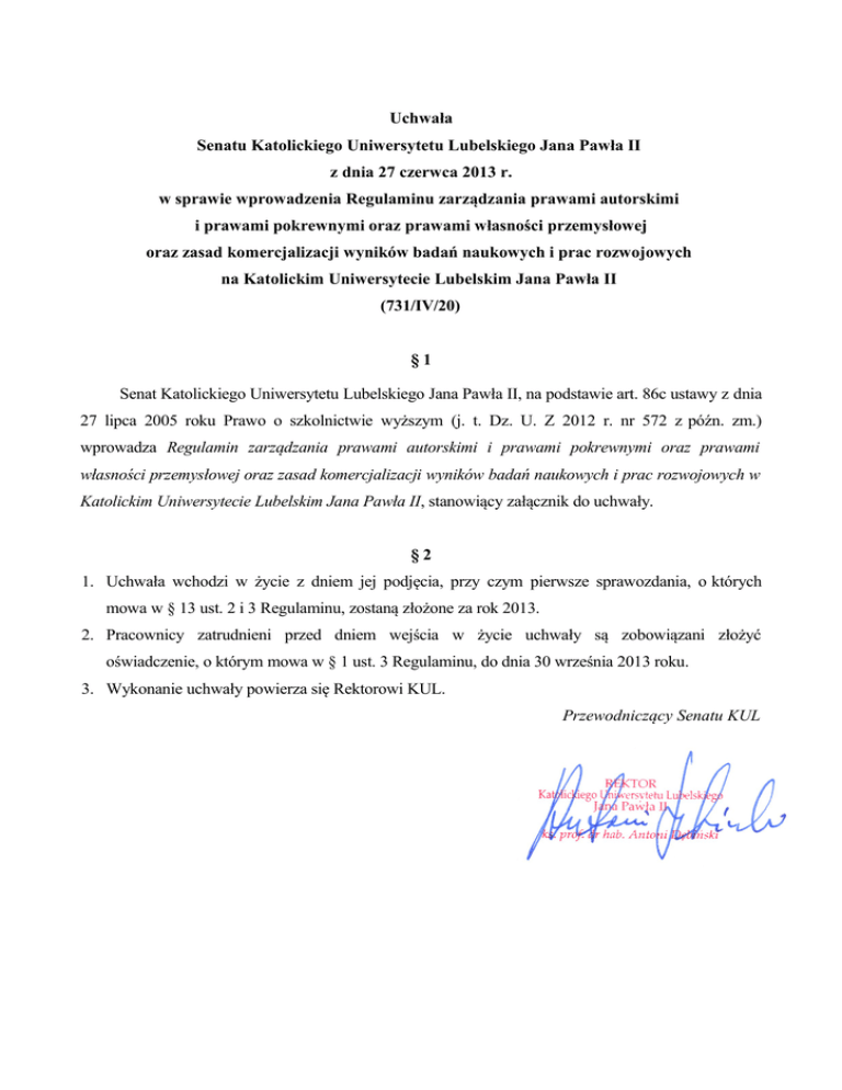 Uchwała Senatu Katolickiego Uniwersytetu Lubelskiego Jana Pawła