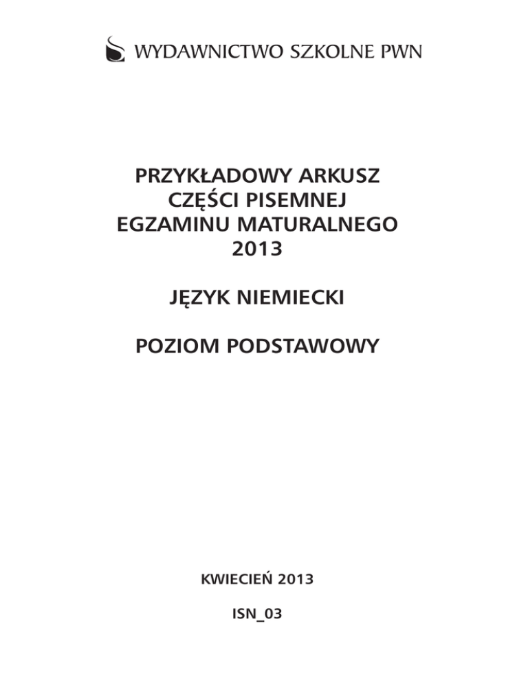 przykładowy arkusz części pisemnej egzaminu maturalnego 2013