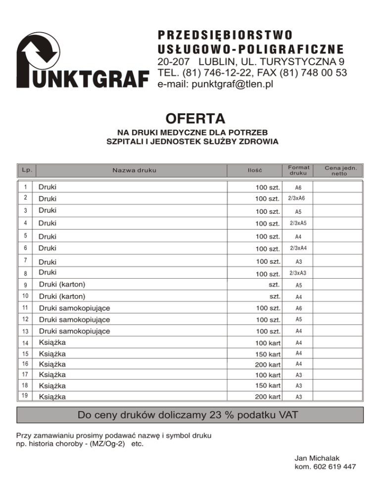 Druki Medyczne - Drukarnia Punktgraf Lublin