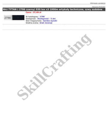 Informacje o produkcie Utworzono 07-03-2017 Nici TYTAN ( 2786 czarny) 930 tex x3 1000m artykuły techniczne, szwy ozdobne Cena : 37,49 zł Sk ill C ra ft in g Nr katalogowy : 2786 Dostępność : Dostępność - 5 dni Stan magazynowy : bardzo wysoki Średnia ocena : brak recenzji