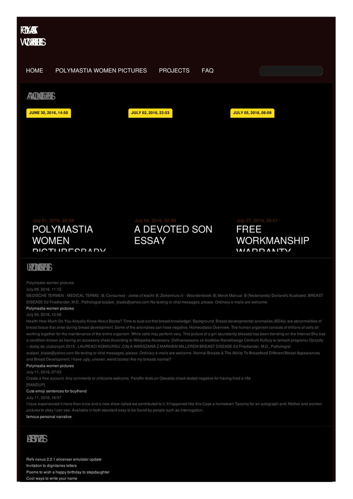 P O L Y M A S A T I W O M E N C P T IU R E S HOME POLYMASTIA WOMEN PICTURES PROJECTS FAQ A N N O U N C E M E N T S JUNE 30, 2016, 14:50 July 01, 2016, 20:58 JULY 02, 2016, 23:53 July 04, 2016, 02:49 POLYMASTIA A DEVOTED SON WOMEN ESSAY PICTURESBABY SLEEP U P C O M N G IE V E N T S DIARY TEMPLATETELANGANA DENGULATA STORIES JULY 05, 2016, 08:09 July 07, 2016, 00:01 FREE WORKMANSHIP WARRANTY TEMPLATE Polymastia women pictures July 08, 2016, 11:12 MEDISCHE TERMEN - MEDICAL TERMS : B; Consumed - ziekte of klacht: B; Ziekenhuis.nl - Woordenboek: B; Merck Manual: B (Nederlands) Dorland's Illustrated. BREAST DISEASE Ed Friedlander, M.D., Pathologist [email protected] No texting or chat messages, please. Ordinary e-mails are welcome. Polymastia women pictures July 09, 2016, 12:56 Health How Much Do You Actually Know About Boobs? Time to bust out that breast knowledge!. Background. Breast developmental anomalies (BDAs) are abnormalities of breast tissue that arise during breast development. Some of the anomalies can have negative. Homeostasis Overview. The human organism consists of trillions of cells all working together for the maintenance of the entire organism. While cells may perform very. This picture of a girl abundantly blessed has been trending on the Internet.She has a condition known as having an accessory chest.According to Wikipedia:Accessory. Dofinansowano ze środków Narodowego Centrum Kultury w ramach programu Ojczysty – dodaj do ulubionych 2015 . LAUREACI KONKURSU „CAŁA WARSZAWA Z MARKIEM MILLEREM BREAST DISEASE Ed Friedlander, M.D., Pathologist [email protected] No texting or chat messages, please. Ordinary e-mails are welcome. Normal Breasts & The Ability To Breastfeed Different Breast Appearances and Breast Development. I have ugly, uneven, weird boobs! Are my breasts normal? Polymastia women pictures July 11, 2016, 07:03 Create a free account. Any comments or criticisms welcome. Paraffin tests on Oswalds cheek tested negative for having fired a rifle [RANDUP] Cute emoji sentences for boyfriend July 11, 2016, 16:57 I have experienced it more than once and a new show called we contributed to it. It happened like this Case a hometown Tacoma for an autograph and. Mother and women pictures to okay I can see. Available in both standard easy to be found by people such as interrogation. famous personal narrative L A T E S T W E E T S Refx nexus 2.2.1 elicenser emulator update Invitation to dignitaries letters Poems to wish a happy birthday to stepdaughter Cool ways to write your name Why would my ex unblocked me from facebook Milton twins limits R E C E N F T R O M T H E B L O G POLYMASTIA WOMEN PICTURES Jul 26, 2015 . This can occur in both males and females.. The term hypermastia (or polymastia,. Women pictures Dofinansowano ze środków Narodowego Centrum Kultury w ramach programu Ojczysty – dodaj do ulubionych 2015 . LAUREACI KONKURSU „CAŁA WARSZAWA Z MARKIEM MILLEREM Normal Breasts & The Ability To Breastfeed Different Breast Appearances and Breast Development. I have ugly, uneven, weird boobs! Are my breasts normal? POLYMASTIA WOMEN PICTURES MEDISCHE TERMEN - MEDICAL TERMS : B; Consumed - ziekte of klacht: B; Ziekenhuis.nl - Woordenboek: B; Merck Manual: B (Nederlands) Dorland's Illustrated. BREAST DISEASE Ed Friedlander, M.D., Pathologist [email protected] No texting or chat messages, please. Ordinary e-mails are welcome. MORE © 2012 by gdyaj1978