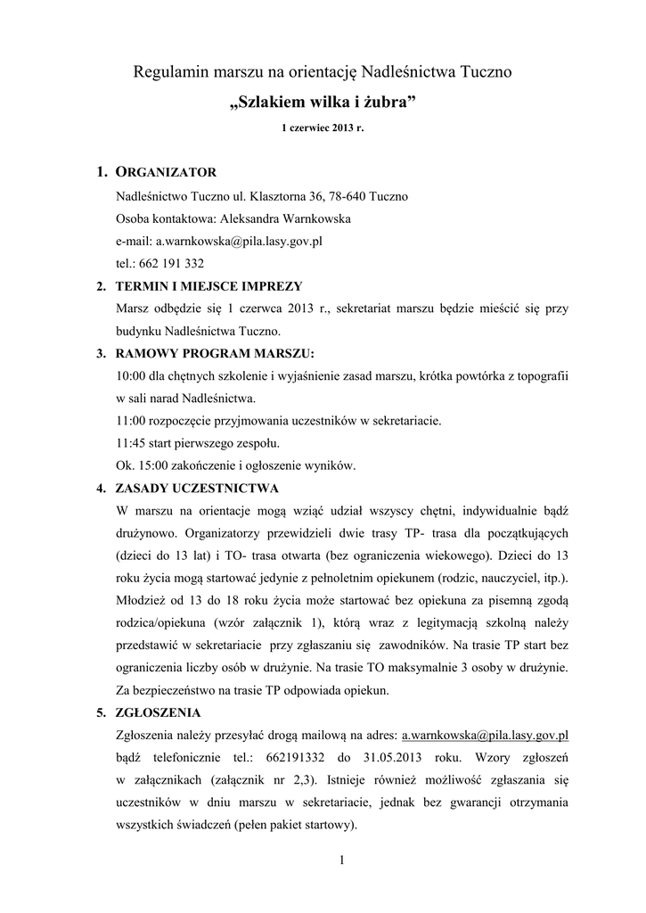 Regulamin marszu na orientacje Nadlesnictwa Tuczno