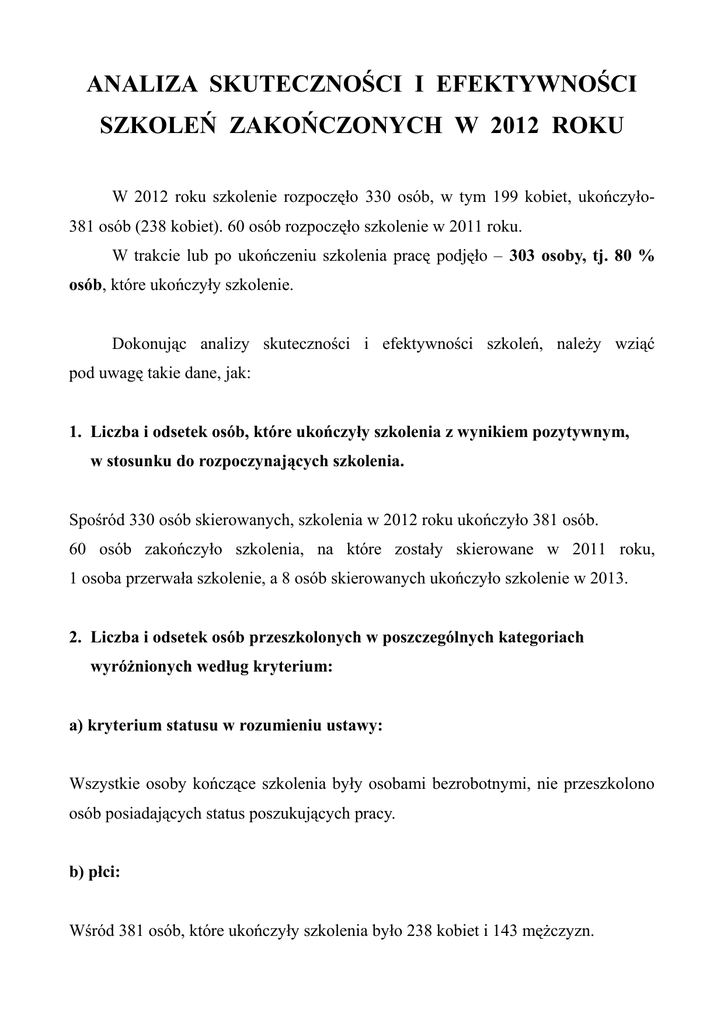 Analiza skutecznosci i efektywnosci szkolen2012rok
