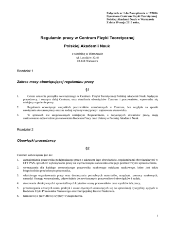 Regulamin pracy CFT - Centrum Fizyki Teoretycznej PAN