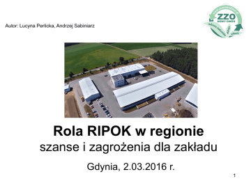 Autor: Lucyna Perlicka, Andrzej Sabiniarz Rola RIPOK w regionie szanse i zagrożenia dla zakładu Gdynia, 2.03.2016 r. 1 Autor: Lucyna Perlicka, Andrzej Sabiniarz PLAN PREZENTACJI 1) definicja RIPOK według znowelizowanej ustawy o odpadach 2) znaczenie RIPOK w gospodarce odpadami, znaczenie RIPOK w WPGO 3) zadania, cel RIPOK 4) szanse i zagrożenia dla Zakładu w świetle nowelizacji 2 Autor: Lucyna Perlicka, Andrzej Sabiniarz NOWA DEFINICJA RIPOK Zgodnie z zapisem art. 35 ust. 6 ustawy z dnia 14.12.2012 r. o odpadach: Zakład zagospodarowania odpadów, o mocy przerobowej wystarczającej do przyjmowania i przetwarzania odpadów z obszaru zamieszkanego co najmniej przez 120 tys. mieszkańców, spełniający wymagania najlepszej dostępnej techniki, o której mowa w art. 207 ustawy z dnia 27 kwietnia 2001 r. – Prawo ochrony środowiska, lub technologii, o której mowa w art. 143 tej ustawy, w tym wykorzystujący nowe dostępne technologie przetwarzania odpadów lub zapewniający: 3 Autor: Lucyna Perlicka, Andrzej Sabiniarz NOWA DEFINICJA RIPOK 1) mechaniczno-biologiczne przetwarzanie zmieszanych odpadów komunalnych i wydzielanie ze zmieszanych odpadów komunalnych frakcji nadających się w całości lub w części do odzysku, lub 4 Autor: Lucyna Perlicka, Andrzej Sabiniarz NOWA DEFINICJA RIPOK 2) przetwarzanie selektywnie zebranych odpadów zielonych i innych bioodpadów oraz wytwarzanie z nich produktu o właściwościach nawozowych lub środków wspomagających uprawę roślin, spełniających wymagania określone w przepisach odrębnych, lub materiału po procesie kompostowania lub fermentacji dopuszczonego do odzysku w procesie odzysku R10, spełniającego wymagania określone w przepisach wydanych na podstawie art. 30 ust. 4, lub 5 Autor: Lucyna Perlicka, Andrzej Sabiniarz NOWA DEFINICJA RIPOK 3) składowanie odpadów powstających w procesie mechaniczno-biologicznego przetwarzania zmieszanych odpadów komunalnych oraz pozostałości z sortowania odpadów komunalnych o pojemności pozwalającej na przyjmowanie przez okres nie krótszy niż 15 lat odpadów w ilości nie mniejszej niż powstająca w instalacji do mechaniczno-biologicznego przetwarzania zmieszanych odpadów komunalnych. 6 Autor: Lucyna Perlicka, Andrzej Sabiniarz NOWA DEFINICJA RIPOK rozszerzenie definicji RIPOK poprzez wprowadzenie zwrotu ,,w tym wykorzystujący nowe dostępne technologie przetwarzania odpadów”. 7 Autor: Lucyna Perlicka, Andrzej Sabiniarz NOWA DEFINICJA RIPOK Przed nowelizacją: wyczerpujący opis dopuszczalnych typów technologii do statusu RIPOK Po nowelizacji: definicja otwarta, która może budzić szereg kontrowersji; brak delegacji do wydania rozporządzenia precyzującego definicję; niekonsekwencja ustawodawcy opisującego szczegółowo wymagania dla instalacji MBP, a ogólnie nowe dostępne technologie 8 Autor: Lucyna Perlicka, Andrzej Sabiniarz NOWA DEFINICJA RIPOK Po nowelizacji: szerokie pole uznaniowości dla sejmików wojewódzkich uchwalających WPGO nie wiadomo na jakiej podstawie będzie się określać czy stosowana w danym zakładzie technologia inna niż określona w art. 35 ust. 6 ustawy zawiera znamiona nowoczesności status RIPOK-a będą mogły otrzymywać zakłady stosujące niesprawdzone systemy przetwarzania odpadów o nieprzewidywalnym efekcie ekologicznym 9 Autor: Lucyna Perlicka, Andrzej Sabiniarz ROLA, ZNACZENIE RIPOK 10 Autor: Lucyna Perlicka, Andrzej Sabiniarz INSTALACJE PONADREGIONALNE ponadregionalne instalacje do przetwarzania odpadów komunalnych 11 Autor: Lucyna Perlicka, Andrzej Sabiniarz INSTALACJE PONADREGIONALNE Ponadregionalną instalacją do przetwarzania odpadów komunalnych jest spalarnia odpadów komunalnych o mocy przerobowej wystarczającej do przyjmowania i przetwarzania zmieszanych odpadów komunalnych zebranych z obszaru zamieszkanego co najmniej przez 500 tys. mieszkańców, spełniająca wymagania najlepszej dostępnej techniki. 12 Autor: Lucyna Perlicka, Andrzej Sabiniarz INSTALACJE PONADREGIONALNE Przed nowelizacją: obiekty o statusie regionalnych instalacji do przetwarzania odpadów komunalnych stanowiły kluczową infrastrukturę w sektorze gospodarki odpadami wyłącznie do RIPOK -ów mogły trafiać określone kategorie odpadów, w tym zmieszane odpady komunalne, odpady zielone i bioodpady oraz pozostałości z sortowania głównie poprzez pracę RIPOK-ów realizowany był obowiązek gmin osiągnięcia określonych poziomów odzysku, recyklingu czy ograniczenia składowania odpadów 13 Autor: Lucyna Perlicka, Andrzej Sabiniarz INSTALACJE PONADREGIONALNE Przed nowelizacją: RIPOK- i sprzyjały realizacji kluczowych dla prawodawcy unijnego zasad postępowania z odpadami – tj. zasadą bliskości oraz hierarchii odpowiedniego postępowania 14 Autor: Lucyna Perlicka, Andrzej Sabiniarz INSTALACJE PONADREGIONALNE Po nowelizacji: Czy RIPOKI nadal mają pełnić główną rolę w systemie gospodarki odpadami, czy jednak ustąpić pola ponadregionalnym instalacjom? ustawodawca zmierza w kierunku uprzywilejowania termicznego przekształcania odpadów nie uwzględniono wysuwanych przez środowisko propozycji by status ponadregionalnej instalacji mogły uzyskać także inne instalacje, które posiadają odpowiednie moce przerobowe a zarazem zapewniają w pierwszym rzędzie odzysk i recykling odpadów 15 Autor: Lucyna Perlicka, Andrzej Sabiniarz INSTALACJE PONADREGIONALNE Po nowelizacji: prymat nadany termicznemu przekształcaniu odpadów nie jest zgodny z przyjętą hierarchią i będzie utrudniać gminom realizację obowiązków odzysku i recyklingu ze względu na konieczność zapewnienia odpowiednio dużego strumienia odpadów dla spalarni, ustawodawca rezygnuje z zasady bliskości jeśli do spalarni będzie kierowana bezpośrednio frakcja odpadów komunalnych, spowoduje to drastyczny spadek strumienia odpadów kierowanych do RIPOK-ów 16 Autor: Lucyna Perlicka, Andrzej Sabiniarz INSTALACJE PONADREGIONALNE mimo intencji ustawodawcy zmniejszenia