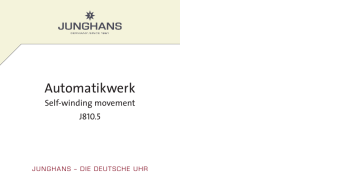 Automatikwerk Self-winding movement J810.5 JUNGHANS – DIE DEUTSCHE UHR JUNGHANS – NIEMIECKI ZEGAREK POLSKI Serdecznie gratulujemy zakupu czasomierza firmy Junghans. To, co w roku 1861 rozpoczęło się wraz z założeniem firmy, szybko rozwinęło się w fascynującą historię sukcesu niemieckiego przemysłu zegarków. Wymagania stawiane zegarkom zmieniły się od tego czasu - jednak filozofia firmy Junghans wciąż pozostaje taka sama. Duch innowacji oraz ciągłe dążenie do precyzji w najmniejszych detalach określają sposób myślenia i działania. To widać na przykładzie każdego zegarka, który nosi nazwę Junghans. Niezależnie od tego, jak wszechstronny jest program firmy Junghans – obowiązuje jedna zasada: połączenie tradycyjnego mechanizmu z najnowszą technologią zegarków i wyjątkowym wzornictwem. To sprawia, że każdy zegarek z gwiazdką Junghans jest jedyny w swoim rodzaju. Życzymy Państwu wielu radości z tego szczególnego czasomierza. Uhrenfabrik Junghans GmbH & Co. KG 104 105 Treść Strona Instrukcja obsługi 107 Wskazówki ogólne 112 Instrukcja obsługi Ważna wskazówka: W czasie od godziny 20 do 2 nie wolno przeprowadzać korekty daty, ponieważ w tym okresie data jest automatycznie zmieniana przez mechanizm i może dojść do uszkodzenia mechanizmu przełączania. Naciąganie zegarka W pozycji koronki A automatyczny mechanizm zegarka można naciągnąć również ręcznie. Jeżeli Państwa model jest wyposażony w przykręcaną koronkę, celem uruchomienia należy ją odkręcić w lewo. Uruchomienie mechanizmu wymaga co najmniej2 do 3 obrotów koronki. Pełny naciąg uzyskujemy po ok. 65 obrotach koronki. Przy pełnym naciągu gwarantowana jest maksymalna dokładność chodu oraz maksymalna rezerwa chodu (również po odłożeniu zegarka). Po ustawieniu zegarek należy nosić, aby naciąg automatyczny (poprzez ruch rotora) utrzymywał przez cały czas gotowość zegarka do pracy. 106 107 Elementy obsługi i funkcje Kaliber J810.5 5 6 1 2 3 7 FR 25 A B C 4 8 9 1 Wskazówka godzinowa 2 Korektor tygodnia kalen darzowego 3 Wskaźnik dnia tygodnia 4 Wskazówka sekundowa 5 Wskaźnik tygodnia kalen darzowego 6 Wskazówka minutowa 7 Koronka 8 Wskaźnik daty 9 Wskaźnik rezerwy chodu Ustawianie godziny Pociągnąć koronkę w położenie C. Spowoduje to zatrzymanie mechanizmu zegarka. Celem ustawienia z dokładnością co do sekundy zaleca się zatrzymanie zegarka w momencie przejścia wskazówki sekundowej nad liczbą 60. Teraz można dokładnie ustawić wskazówkę minutową na kresce minutowej i ustawić godzinę. Aby uruchomić wskazówkę sekundową należy ponownie nacisnąć koronkę w położenie A. 108 Ustawianie daty Pociągnąć koronkę w pozycję B. Obracając koronkę w lewo można ustawić datę. W czasie od godziny 20 do 2 nie wolno przeprowadzać korekty daty, ponieważ w tym okresie data jest automatycznie zmieniana przez mechanizm i może dojść do uszkodzenia mechanizmu przełączania. Gdy miesiąc jest krótszy, niż 31 dni, należy ustawić datę ręcznie na 1 dzień kolejnego miesiąca. Ustawianie dnia tygodnia Pociągnąć koronkę w położenie C. Spowoduje to zatrzymanie mechanizmu zegarka. Ruch koronki powoduje przesuwanie wskazówki godzinowej i minutowej. Obracać wskazówki do momentu pojawienia się żądanego dnia tygodnia. Ustawianie tygodnia kalendarzowego Nacisnąć korektor tygodnia kalendarzowego (2) przedmiotem (np. ołówkiem) do wyświetlenia żądanego tygodnia kalendarzowego. Gdy wyświetlany jest dzień tygodnia niedziela 'SON', w czasie od godziny 20 do 2 nie wolno przeprowadzać korekty tygodnia kalendarzowego, ponieważ może to doprowadzić do uszkodzenia mechanizmu przełączania. Wskaźnik rezerwy chodu Wskaźnik rezerwy chodu podaje czas pozostały do zatrzymania zegarka. 109 Informacje techniczne Mechaniczny, 3-wskazówkowy mechanizm zegarka ze wskaźnikiem daty, dnia tygodnia, tygodnia kalendarzowego oraz rezerwy chodu Kaliber J810.5 Automatyczny naciąg obustronny 28 kamieni 28.800 półdrgań / godzinę Rezerwa chodu 42 godzin Ochrona antykorozyjna wg DIN 8309 Zabezpieczenie przed uderzeniem: Incabloc lub Nivachoc Spirala: Nivarox II Balans: Nikiel złocony Wodoszczelność Oznaczenie Wskazówki użytkowania mycie, deszcz, rozpryskiwana woda prysznic kąpiel nurkowanie bez wyposażepływanie nia Brak oznaczenia nie nie nie nie nie 3 ATM tak nie nie nie nie 5 ATM tak nie tak nie nie 10 ATM tak tak tak tak nie Stan „3 – 10 ATM“ dotyczy tylko fabrycznie nowych zegarków. Wpływy zewnętrzne mogą jednak wpływać na wodoszczelność. Proszę regularnie zlecać kontrolę swojego zegarka. 110 111 Wskazówki ogólne Wpływy zewnętrzne mogą wpływać na wodoszczelność, co może umożliwiać ewentualne wnikanie wilgoci. Dlatego radzimy zlecanie regularnych kontroli swojego zegarka przez specjalistę firmy Junghans. Inne prace serwisowe lub naprawy paska należy również zlecać specjaliście firmy Junghans. Państwa zegarek został wyposażony w wysokiej jakości pasek, który został wielokrotnie sprawdzony w naszym zakładzie. Jeżeli pomimo tego istnieje konieczność wymiany paska, proszę stosować pasek o takiej samej jakości, najlepiej oryginalny. Zegarek i pasek można czyścić suchą lub lekko nawilżoną szmatką. Uwaga: Nie stosować chemicznych środków czyszczących (np. benzyny lub rozpuszczalnika). Może to doprowadzić do uszkodzenia powierzchni. 112 113 42.712-0572 / 4460642 / 0814 J810.5 Uhrenfabrik Junghans GmbH & Co. KG Postfach 100 · D-78701 Schramberg www.junghans.de · [email protected]