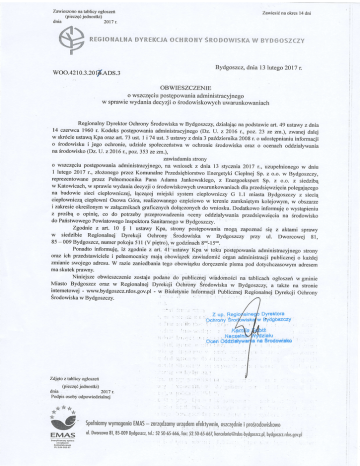 I lutego 2017 r,, zlo2onego przez Komunalne Przedsigbiorstwo Energetyki Cieplnej Sp. z o.o. w Bydgoszczy,
