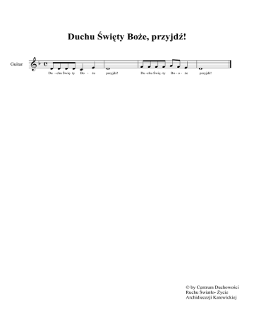 Duchu Święty Boże, przyjdź! Guitar &b c œ œ œ œ œ Du - chu Świę- ty Bo - œ że w przyjdź! œ œ œ œ œ œ œ Du -chu Świę -ty Bo - o - że w przyjdź! © by Centrum Duchowości Ruchu Światło- Życie Archidiecezji Katowickiej