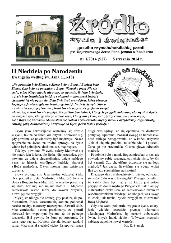 "Źródło" 5.01.2014 (nr 517) - Strona Parafii NSPJ w Raciborzu