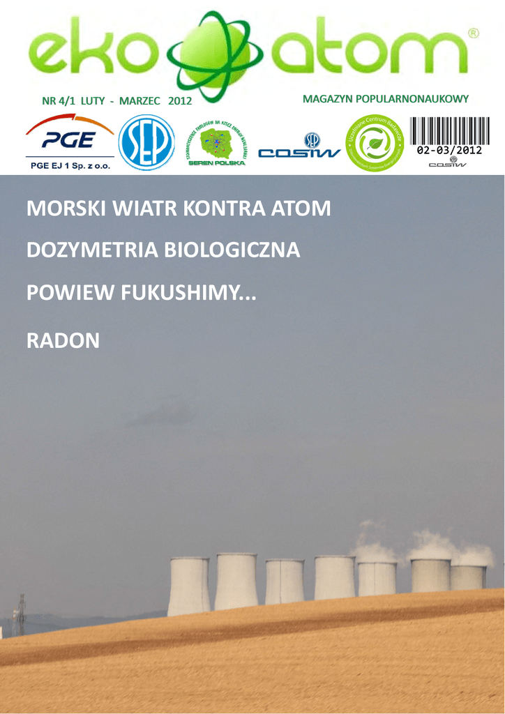 NR 4/1 LUTY ‐ MARZEC 2012 MARZEC 2012 MAGAZYN POPULARNONAUKOWY MORSKI WIATR KONTRA ATOM DOZYMETRIA BIOLOGICZNA POWIEW FUKUSHIMY... RADON 2 Reklama Kwartalnik popularnonaukowy Luty— Marzec 2012 Redakcja ul. Świętokrzyska 14 00‐050 Warszawa tel.22 336 14 19 fax. 22 336 14 25 www.ekoatom.com.pl E‐mail: [email protected] SKŁAD REDAKCJI Redaktor Naczelny dr inż. Krzysztof Rzymkowski, dr inż. Marek Rabiński, dr inż. Andrzej Mikulski, dr inż. Piotr Czerski (PGE), Sekretarz Redakcji Jerzy Szczurowski (SEP COSIW ) Redaktor Techniczny Jarosław Cyrynger (SEP COSIW ) RADA PROGRAMOWA: Przewodniczący prof. dr hab. Maciej Sadowski, Członkowie prof. dr hab. Janusz Lewandowski (PW), prof. dr hab. Łukasz Turski (UW) prof. dr hab. Zdzisław Celiński, prof. dr Andrzej Strupczewski, prof. dr hab. Natalia Golnik (PW) prof. dr hab. inż. Roman Domański NASZ SPONSOR DOŁĄCZ I ZOBACZ RELACJE FOTOGRAFICZNE Redakcja zastrzega sobie prawo dokonywania skrótów, korekty, edycji nadesłanych materiałów, oraz nie zwraca materiałów niezamówionych. Redakcja zastrzega sobie prawo do publikacji materiałów w dogodnym dla redakcji czasie i kolejności oraz niepublikowania materiału bez podania przyczyny. Redakcja nie odpowiada za treść zamieszczonych reklam ogłoszeń i innych płatnych. 3 EKOATOM Nr 4. Luty ‐ Marzec 2012 Szanowni Państwo Prezentujemy już czwarty numer kwartalnika EKOATOM, jedno‐ cześnie dziękując za zainteresowanie poprzednimi. Dotychczas stronę EKOATOM odwiedziło łącznie około 64 000 osób. Będzie‐ my dokładać starań, by atrakcyjność naszego pisma wzrastała. Pragnąc bardziej przybliżyć problemy związane z ochroną środo‐ wiska, w bieżącym numerze przedstawiamy rozległy i szeroko udokumentowany materiał polemiczny, w którym A. Strupczewski omawia aspekty ekonomiczne wytwarzania energii elektrycznej przez elektrownie wiatrowe. Mało znany i rzadko poruszany temat, bardzo interesująco przedstawiony przez S. Sommera, to zagadnienia związane z dozymetrią biologiczną. Dozymetria biologiczna pozwala określić dawkę promieniowania jonizującego na podstawie zmian spowodowanych w naszym organizmie. Obserwując zmiany w materiale genetycznym limfocytów krwi obwodowej, krążących przecież po całym ciele, możliwe jest odczyta‐ nie dawki, nawet kiedy promieniowanie objęło niewielki fragment ciała. Jest to najlep‐ szy „dozymetr”, który każdy zawsze nosi ze sobą. We wstępie do tematyki dotyczącej promieniowania jonizującego M. Rabiń‐ ski przedstawił krótką historię znaku ostrzegającego przed promieniowaniem. Po raz kolejny, w artykule K. Fornalskiego i L. Dobrzyńskiego omawiany jest ważny problem niskich dawek promieniowania i ich oddziaływanie na organizm. Kwe‐ s a małych dawek jest elementem trwającej dyskusji na temat ich nieszkodliwości. W bardzo interesującej pracy zbiorowej pracowników Centralnego Laborato‐ rium Ochrony Radiologicznej (K. Isajenko, B. Piotrowska, M. Fujal) omówiono wyniki pomiarów izotopów promieniotwórczych, które pojawiły się nad Polską po awarii elektrowni Fukushima Dai‐ichi . Zagadnienia związane z ochroną radiologiczną i no‐ wymi inicjatywami w tej dziedzinie przedstawiła N. Golnik w artykule „Kultura ochro‐ ny radiologicznej”. Kultura ochrony radiologicznej to sposób, w jaki ochrona radiolo‐ giczna jest regulowana, zarządzana, wykonywana, kultywowana i postrzegana w miej‐ scach pracy, medycynie i życiu codziennym i odzwierciedla nastawienie, zrozumienie, cele i wartości wspólne, uznawane przez pracowników, lekarzy, inspektorów i ogół społeczeństwa, w odniesieniu do ochrony radiologicznej. Uzupełnieniem rozważań dotyczących ochrony przed promieniowaniem jest opis technologii wspomagających rozwój bezpieczeństwa energetyki jądrowej przygo‐ towany przez S. Sommera. W ostatnim artykule omawiam prowadzone w Japonii działania związane z usuwaniem skutków katastrofy ekologicznej po awarii elektrowni Fukushima Dai‐ichi wywołanej falą tsunami. Wszystkich chętnych, a przede wszystkim specjalistów, serdecznie zapraszamy do współpracy i publikowania na naszych łamach. Dalszy losy naszego czasopisma uzależnione są od wsparcia sponsorów – Zespół Redakcyjny prosi o kontakt zainteresowanych kontynuacją istnienia naszego kwartalnika EKOATOM JEST PRAWNIE ZASTRZEŻONYM ZNAKIEM TOWAROWYM Centralny Ośrodek Szkolenia i Wydawnictw Ul. Świętokrzyska 14 00‐050 Warszawa tel.22 336 14 19 fax. 22 336 14 25 www.cosiw.pl e‐mail: [email protected] Redaktor Naczelny Dr inż. Krzysztof Rzymkowski Kwartalnik popularnonaukowy Luty—Marzec 2012 W numerze 4 Wiadomości 6 RANKING LOKALIZACJI ELEKTROWNI JĄDROWYCH 6 RANKING LOKALIZACJI ELEKTROWNI JĄDROWYCH 7 RUSZYŁ KONKURS NA PREZESA PGE EJ 7 RUSZYŁ KONKURS NA PREZESA PGE EJ 7 ATOMOWE PLANY PGE NA ROK 2012 7 ATOMOWE PLANY PGE NA ROK 2012 7 PROF. STRUPCZEWSKI: PROGRAM JĄDROWY REALIZOWANY PRAWIDŁOWO 7 PROF. STRUPCZEWSKI: PROGRAM JĄDROWY REALIZOWANY PRAWIDŁOWO 8 WSPOMNIENIE O PROF. ZBIGNIEWIE JAWOROWSKIM 8 WSPOMNIENIE O PROF. ZBIGNIEWIE JAWOROWSKIM Edukacja Andrzej Strupczewski 10 ODPOWIEDŹ NA OPRACOWANIE, MORSKI WIA 10 ODPOWIEDŹ NA OPRACOWANIE, MORSKI WIATR KONTRA ATOM TR KONTRA ATOM Wszystkie źródła energii są Polsce potrzebne i w planach polskich jest miejsce zarówno dla energii jądrowej jak i dla farm wiatrowych, w tym dla morskich farm wiatrowych (MFW). Opracowanie „Morski wiatr kontra atom” niepotrzeb‐ nie podchodzi do spraw rozwoju tych dwóch źródeł energii jakby były one sobie nawzajem wrogie, jakby się wykluczały. Sylwester Sommer 32 DOZYMETRIA BIOLOGICZNA Dozymetria biologiczna pozwala określić dawkę promieniowania jonizującego na podstawie zmian spowodowanych przez nią w naszym organizmie. Najczęściej posługujemy się zmianami w materiale genetycznym limfocytów krwi ob‐ wodowej Promieniowanie jonizujące Marek Rabiński 48 HISTORIA ZNAKU OSTRZEG