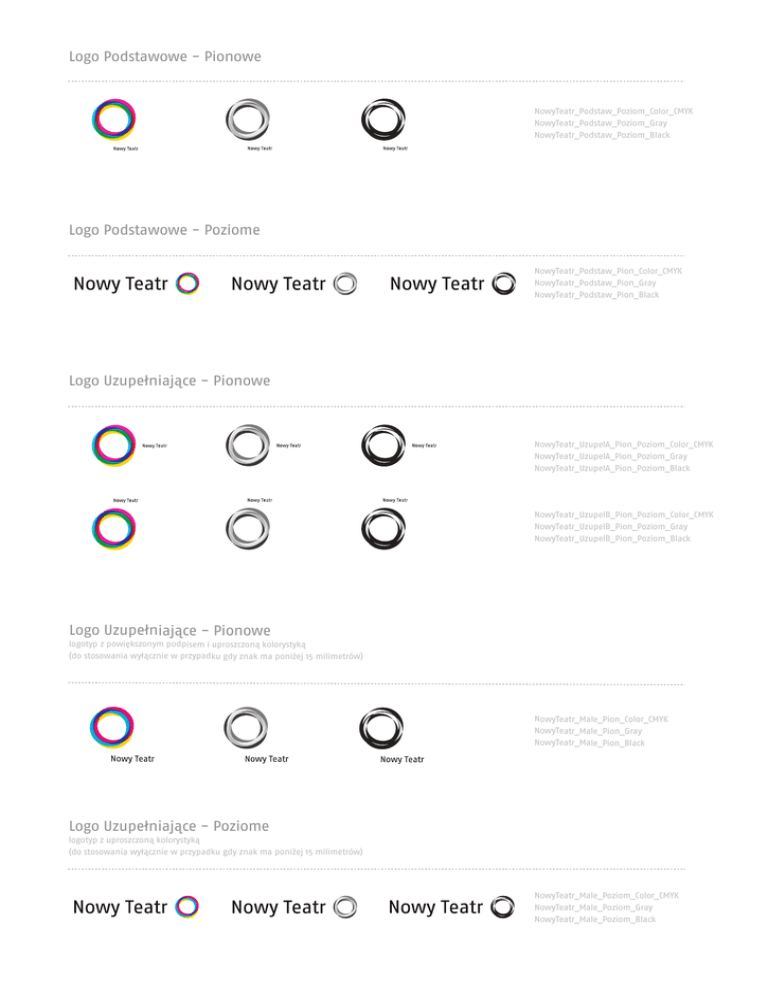 Logo Podstawowe - Pionowe NowyTeatr_Podstaw_Poziom_Color_CMYK NowyTeatr_Podstaw_Poziom_Gray NowyTeatr_Podstaw_Poziom_Black Logo Podstawowe - Poziome NowyTeatr_Podstaw_Pion_Color_CMYK NowyTeatr_Podstaw_Pion_Gray NowyTeatr_Podstaw_Pion_Black Logo Uzupełniające - Pionowe NowyTeatr_UzupelA_Pion_Poziom_Color_CMYK NowyTeatr_UzupelA_Pion_Poziom_Gray NowyTeatr_UzupelA_Pion_Poziom_Black NowyTeatr_UzupelB_Pion_Poziom_Color_CMYK NowyTeatr_UzupelB_Pion_Poziom_Gray NowyTeatr_UzupelB_Pion_Poziom_Black Logo Uzupełniające - Pionowe logotyp z powiększonym podpisem i uproszczoną kolorystyką (do stosowania wyłącznie w przypadku gdy znak ma poniżej 15 milimetrów) NowyTeatr_Male_Pion_Color_CMYK NowyTeatr_Male_Pion_Gray NowyTeatr_Male_Pion_Black Logo Uzupełniające - Poziome logotyp z uproszczoną kolorystyką (do stosowania wyłącznie w przypadku gdy znak ma poniżej 15 milimetrów) NowyTeatr_Male_Poziom_Color_CMYK NowyTeatr_Male_Poziom_Gray NowyTeatr_Male_Poziom_Black