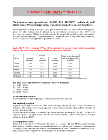 ZADANIE 7. (0-1) 11 sierpnia 1999 r. w Polsce można było zaobserwować częściowe zaćmienie