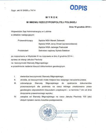 Pismem z dnia 3 września 2014 r. Jakub Piechota wniósł do Wojewódzkiego