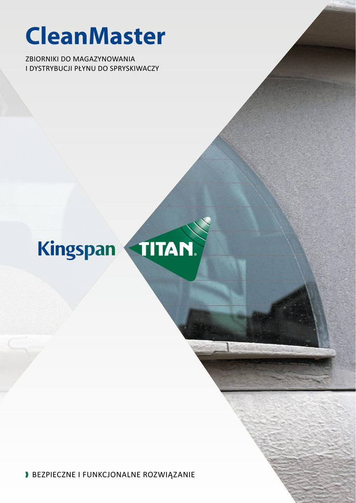 CleanMaster ZBIORNIKI DO MAGAZYNOWANIA I DYSTRYBUCJI PŁYNU DO SPRYSKIWACZY BEZPIECZNE I FUNKCJONALNE ROZWIĄZANIE ZBIORNIKI DO MAGAZYNOWANIA PŁYNU DO SPRYSKIWACZY KINGSPAN TITAN CleanMaster IDEALNE ROZWIĄZANIE UŁATWIAJĄCE MAGAZYNOWANIE I DYSTRYBUCJĘ PŁYNU DO SPRYSKIWACZY Z JEDNOCZESNĄ KONROLĄ WYDAWANEJ SUBSTANCJI ZALETY WYPOSAŻENIE STANDARDOWE Odporność na zmienne warunki atmosferyczne. Zbiorniki jednopłaszczowe białe, półprzezroczyste. Sprawdzony układ dystrybucyjny. Właz rewizyjny 8”. Niezawodna i prosta konstrukcja. Króciec wentylacyjny. Pojemności od od 1300 do 5000 litrów. Zbiornik nie wymaga częstych zabiegów konserwacyjnych. Gwarancja na szczelność urządzenia wynosi 5 lat, natomiast na wyposażenie 2 lata. Gwarancja dotyczy wyrobu użytkowanego w sposób zgodny z instrukcją producenta. DOSTĘPNE POJEMNOŚCI I WYMIARY: Wlew 2” (u góry zbiornika). Uproszczony układ dystrybucyjny wykonany z pompy zatapialnej 230V (przełącznik ON/OFF), manualnego nalewaka oraz 6m przewodu dystrybucyjnego. WYPOSAŻENIE OPCJONALNE Przyłącze do napełniania u góry zbiornika z suchozłączem 2”. Linia napełniająca od góry zbiornika do poziomu roboczego z suchozłączem 2”. Przepływomierz cyfrowy przy nalewaku. Automatyczny nalewak. Zegarowy wskaźnik poziomu. KOD PRODUKTU OBLB1300* Pojemność 1300 l Średnica 1,20 m Wysokość 1,40 m KOD PRODUKTU OBLB3500* Pojemność 3500 l Średnica 1,90 m Wysokość 1,80 m KOD PRODUKTU OBLB2500* Pojemność 2500 l Średnica 1,65 m Wysokość 1,50 m ELEMENTY WYPOSAŻENIA ZBIORNIKÓW KOD PRODUKTU Pompa zatapialna. OBLB5000* Pojemność 5000 l Średnica 2,01 m Wysokość 2,30 m * Ciąg dalszy kodu jest zależny od specyfikacji zbiornika. Gwarancja: na szczelność zbiornika 5 lat, wyposażenie zbiorników 2 lata. Czujnik poziomu. Przepływomierz cyfrowy. Dopuszcza się różnice w odcieniach produktów przedstawionych na ulotkach, wynikające ze specyfiki druku. Specyfikacje produktów mogą nieznacznie ulec zmianie, w celu uzyskania aktualnej opcji wyposażenia produktu, prosimy o kontakt z biurem Kingspan Environmental lub najbliższym dystrybutorem. Kingspan Environmental Sp. z o.o. | ul. Topolowa 5 | 62-090 Rokietnica | Polska Tel.: +48 61 814 44 00 | Fax: +48 61 814 54 99 | [email protected] | www.kingspanenviro.pl 01-2015 Dystrybutor: