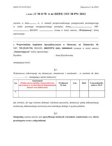 ( wzór ) U M O W A nr DZPZ/ 333/ 38 PN/ 2012