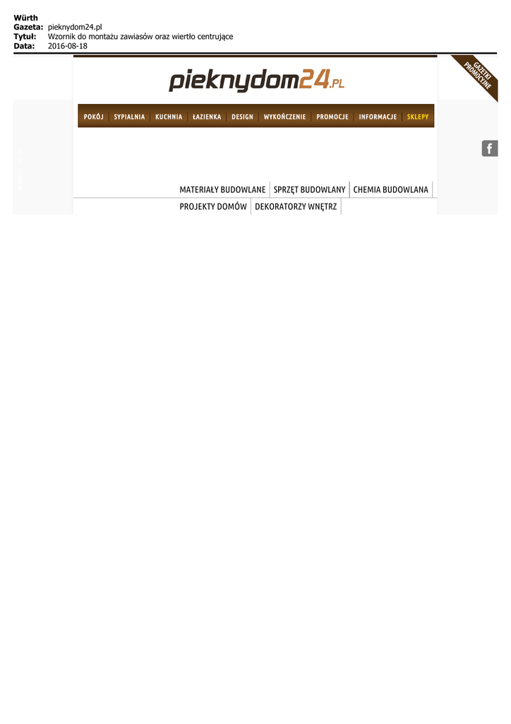 Wzornik do montażu zawiasów oraz wiertło centrujące