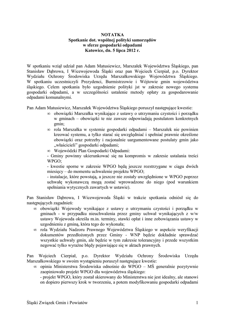notatka ze spotkania - Śląski Związek Gmin i Powiatów