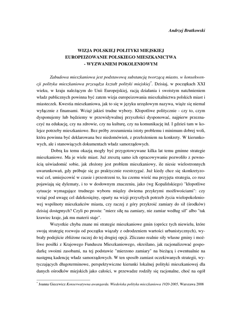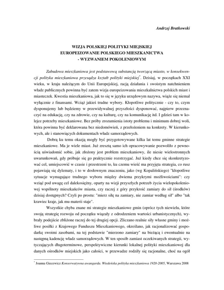 Andrzej Bratkowski WIZJA POLSKIEJ POLITYKI MIEJSKIEJ