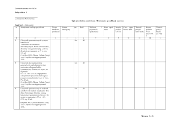Oznaczenie sprawy: PN – 73/16 Załącznik nr 1 ________________________ ( Oznaczenie Wykonawcy) Opis przedmiotu zamówienia / Formularz specyfikacji cenowej Część nr 1 – Odczynniki l.p. Asortyment według specyfikacji 1 1. 2 Odczynnik przeznaczony do pracy na komórkach i zarodkach w warunkach atmosferycznych. Bufor zawiera ludzką albuminę oraz gentamycynę. Gotowy do użycia po nagrzaniu w 37 st. poj. 125 ml. Certyfikat MEA (Mouse Embrio Assay) oraz Certyfikat na niepyrogenność LAL . 2. Odczynnik do manipulacji na gametach, do zapłodnienia in vitro zawierający albuminę ludzką i gentamycynę. Gotowy do użycia po nagrzaniu w 37 st. i 6% CO2. Kompatybilne z odczynnikiem pracowni andrologii do przygotowania plemników do in vitro. Poj. 60 ml. Certyfikat MEA (Mouse Embrio Assay) oraz Certyfikat na niepyrogenność LAL . Odczynnik przeznaczony do hodowli zarodków od stadium przedjądrzy do 3 dnia. Zawierający albuminę ludzką, hialuronian i gentamycynę. Gotowy do użycia po nagrzaniu w 37 st. i 6% CO2. op. 30 ml. 3. Nazwa handlowa, producent 3 Numer katalogowy 4 j.m. Ilość 5 Szt. 6 40 Szt. 40 Szt. 50 Wielkość pojemność opakowania 7 / Cena opak. netto Stawka podatk u VAT Cena opak. brutto (8x9) Wartość pozycji netto (6x8) 8 9 10 11 Kwota podatku VAT (11x%VA T 12 Certyfikat MEA (Mouse Embrio Assay) oraz Certyfikat na niepyrogenność LAL . Strona 1 z 6 Wartość pozycji brutto (11+12) 13 Oznaczenie sprawy: PN – 73/16 4. 5. 6. 7. 8. Odczynnik do hodowli zarodków od 3 dnia do stadium blastocysty. Zawiera albuminę ludzką, hialuronian i gentamycynę. Gotowy do użycia po nagrzaniu w 37 st. i 6% CO2. op. 30 ml. Certyfikat MEA (Mouse Embrio Assay) oraz Certyfikat na niepyrogenność LAL . Lekki olej parafinowy do pokrycia odczynników podczas procedury zapłodnienia in vitro i mikromanipulacji. Sterylny. Gotowy do użycia po nagrzaniu w 37 st. i 6% CO2. Op. 100 ml. Szt. 70 Szt. 180 Odczynnik do usuwania komórek cumulusa, zawierający hialuronidazę, ludzką albuminę i penicylinę G. Gotowy do użycia po rozcieńczeniu z odczynnikiem przeznaczonym do pracy na komórkach i zarodkach w warunkach atmosferycznych. Koncentracja hialuronidazy przed rozcieńczeniem 800 IU/ml. Gotowy do użycia po nagrzaniu w 37 st. Sterylny. Op. 0,1ml, pakowany po 5 szt. Certyfikat na niepyrogenność LAL . Odczynnik do spowalniania plemników w procedurze ICSI. Zawierający rekombinowaną albuminę ludzką i PVP. Op. 0,1ml, pakowany po 5 szt. Test LAL. certyfikat medyczny. Certyfikat na niepyrogenność LAL Op. 50 op. (5 x 0,1 ml) Op. 35 Zestaw 4 odczynników do rozmrażania zarodków zamrożonych w 3 dniu metodą slow freezing. Zawierający ludzką albuminę i penicylinę G. Kompatybilne z odczynnikami do mrożenia zarodków na etapie 3 dnia hodowli. Gotowe do użycia po ogrzaniu w 25 st. Op. 4 x 10 ml Op. 3 Strona 2 z 6 Oznaczenie sprawy: PN – 73/16 9. Odczynnik przeznaczony do transferu zarodków zawierający bufor wodorowęglanowy, kwas hialuronowy, rekombinowaną albuminę ludzką oraz gentamycynę. Gotowy do użycia po nagrzaniu w 37 st. i 6% CO2. op. 10 ml. Test MEA≥80% i LAL<0.25. Szt. 40 Cena / netto / ____________________________________ słownie : ___________________________________________________________________________________zł _________groszy Kwota podatku VAT : _______________________________ słownie: .___________________________________________________________________________________ zł ________ groszy Cena / brutto / ______________________________ ______słownie : __________________________________________________________________________________ zł ________ groszy _____________________dnia __________2017 roku _________________________________ ( Nazwisko i imię osoby upoważnionej do reprezentowania Wykonawcy oraz podpis) Strona 3 z 6 Oznaczenie sprawy: PN – 73/16 Część nr 2 – płytki 5 komorowe do hodowli l.p. Asortyment według specyfikacji 1 1. Nazwa handlowa, producent 2 Płytki 5 komorowe do hodowli Wykonane z plastiku polistyrenowego, podstawka z numerami opisującymi każdą komorę (1,2,3,4,5), o objętości 1 ml każda, całość z przykrywką. Sterylizowane radiacyjnie. Nie toksyczne dla gamet i zarodków. Poziom endotoksyn poniżej 0,5 U/ml. Jednorazowego użytku. Certyfikat MEA (Mouse Embrio Assay) oraz Certyfikat na niepyrogenność LAL . Pakowane maksymalnie po 4 płytki. W kartonie 100 opakowań. 3 Numer katalogowy 4 j.m. 5 Op. Ilość 6 40 Wielkość pojemność opakowania 7 / Cena opak. netto Stawka podatk u VAT Cena opak. brutto (8x9) Wartość pozycji netto (6x8) 8 9 10 11 Kwota podatku VAT (11x%VA T 12 Wartość pozycji brutto (11+12) 13 Cena / netto / ____________________________________ słownie : ___________________________________________________________________________________zł _________groszy Kwota podatku VAT : _______________________________ słownie: .___________________________________________________________________________________ zł ________ groszy Cena / brutto / ______________________________ ______słownie : __________________________________________________________________________________ zł ________ groszy _____________________dnia __________2017 roku _________________________________ ( Nazwisko i imię osoby upoważnionej do reprezentowania Wykonawcy oraz podpis) Strona 4 z 6 Oznaczenie sprawy: PN – 73/16 Część nr 3 – Pipety do mikromanipulacji l.p. Asortyment według specyfikacji 1 1. 2 Pipety do mikromanipulacji (ICSI) Sterylne (sterylizowane radiacyjnie), wykonane ze szklanych borosilikatowych kapilar (zewnętrzna średnica 1 mm, wewnętrzna średnica 0,78 mm) i całkowitej długości 5,5mm, zgięta pod kątem 30-35 stopni. Długość ramienia 0,9-1 mm, o średnicy wewnętrznej 4,5-5 µm i zewnętrznej średnicy 6-7 µm, z ostrzem ściętym pod kątem 35 stopni , pakowane pojedynczo w sterylnej komorze typu D, jednorazowego użytku. Nietoksyczne dla gamet i zarodków, testowane na 1komórkowych na zarodk