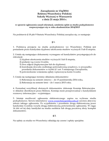 Zarządzenie nr - Wszechnica Polska