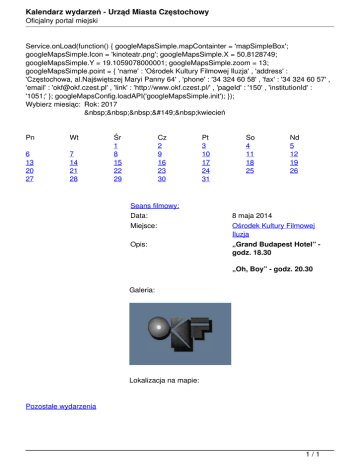 Kalendarz wydarzeń - Urząd Miasta Częstochowy