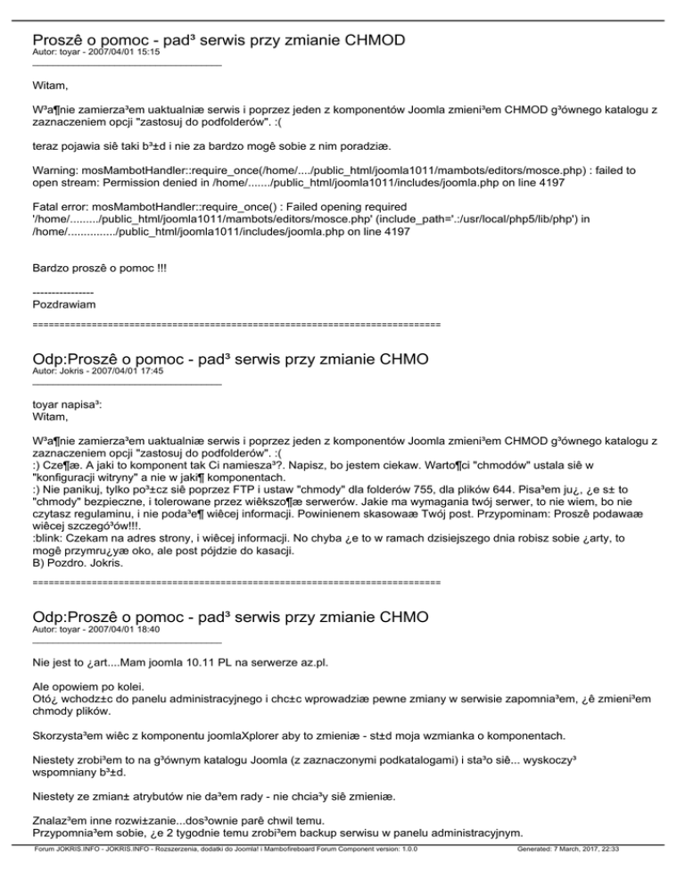 Proszę o pomoc - pad³ serwis przy zmianie CHMOD Odp:Proszę o
