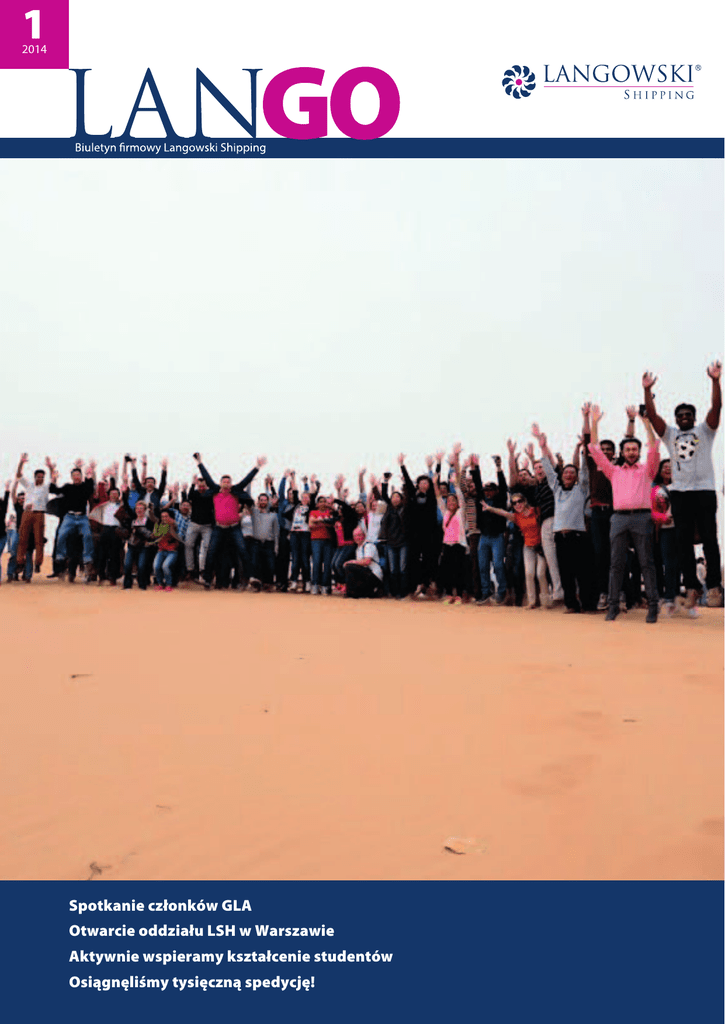 1 2014 Spotkanie członków GLA Otwarcie oddziału LSH w Warszawie Aktywnie wspieramy kształcenie studentów Osiągnęliśmy tysięczną spedycję! Drodzy Czytelnicy Otwarcie oddziału LSH w Warszawie 1 kwietnia br. otwarty został oddział Langowski Shipping w Warszawie. Biuro mieści w pokoju nr 7 na parterze budynku przy Al. Wilanowskiej 372 w Warszawie (dzielnica Mokotów), w niedalekim sąsiedztwie portu lotniczego im. Fryderyka Chopina. Pierwszym pracownikiem warszawskiego oddziału jest Maciej Więcek. Otwarcie oddziału wpisuje się w realizowane przez Langowski Shipping plany rozwojowe na lata 2012-2017. Do podstawowych zadań oddziału należy wsparcie rozwoju sprzedaży usług, głównie w rejonach Polski Centralnej oraz Południowej. Obsługa operacyjna oraz odprawy celne realizowane będą nadal wyłącznie w siedzibie głównej firmy w Gdyni. Zlokalizowanie nowej placówki w pobliżu lotniska jest odpowiedzią na potrzeby klientów, oczekujących od firmy poszerzenia zakresu usług spedycji lotniczej. Kolejnym krokiem w rozwoju usług oferowanych przez warszawski oddział firmy, może być otwarcie własnej Agencji Celnej na terenie portu lotniczego. Jesteśmy przekonani, że bezpośrednie spotkania handlowe pracowników Działu Sprzedaży z importerami oraz eksporterami, przyniosą wymierne korzyści obu stronom a bieżące wsparcie merytoryczne w prowadzeniu biznesu będzie wyjściem naprzeciw oczekiwaniom potencjalnych klientów. Osiągnęliśmy tysięczną spedycję! W tym roku rekordowo, bo już 21 marca br. przekroczyliśmy tysięczną spedycję! Dla porównania w poprzednim roku osiągnęliśmy ten wynik w połowie kwietnia. Nasz wspólny sukces zgodnie w tradycją uczciliśmy zajadając się pyszną pizzą. Może kolejny 1000 pojawi się już w maju? Tego sobie życzymy! Poniżej dane ilościowe dotyczące pozostałych miesięcy pierwszego kwartału: Ilość kontenerów w latach miesiąc2013 2014 styczeń 358 541 luty 342 465 marzec 316 434 Oddaję w Wasze ręce pierwsze wydanie biuletynu firmowego LSH. O jego powstaniu nie zadecydował przypadek. W firmie niezwykle dużo się dzieje i zbyt wiele wydarzeń niejednokrotnie przechodziło bez echa. Od tej chwili wszelkimi wydarzeniami z życia firmy, zarówno tymi o tematyce biznesowej, jak i dotyczącymi naszej małej społeczności, dzielić będziemy się na łamach niniejszego biuletynu. Dziękuję osobom, które zaangażowały się w tworzenie treści pierwszego wydania, szczególnie podziękowania dla Justyny Kąkol-Brzeskiej za dostarczenie kilku artykułów. Osobne podziękowania za udział w konkursie na nazwę naszej gazetki, ale o tym już bardziej szczegółowo przeczytacie wewnątrz numeru. Przyjemnej lektury Maja Zaborek Aktywnie wspieramy kształcenie studentów Z początkiem marca nawiązaliśmy współpracę z Wyższą Szkołą Bankową w Gdańsku w zakresie organizowania staży w ramach projektu Informatyka i logistyka kierunkami przyszłości – program rozwoju Wyższej Szkoły Bankowej w Gdańsku. Podstawowym celem realizacji stażu jest rozwój współpracy między uczelnią a pracodawcami oraz wzmocnienie praktycznego wymiaru kształcenia. W stażu mogą brać udział studenci studiów niestacjonarnych, którzy ukończyli I rok studiów. Uczelnia wyposaża studenta w program stażu a do nas należy nadzór merytoryczny nad jego realizacją i opieka nad studentem. Program możemy dowolnie modyfikować w zależności od specyfiki firmy lub działu, w którym staż się odbywa. Staż trwa 3 miesiące a wynagrodzenie studenta pokrywane jest ze środków EFS. Pierwsi studenci WSB, którzy pomyślnie przeszli proces rekrutacji rozpoczęli już staż w LSH. Zgodnie z programem stażu, każdy z nich będzie zapoznawał się z pracą zarówno w Dziale Transportu, Spedycji jak i w Agencji Celnej. 2 Za co cenią nas nasi Klienci – wyniki ankiety W ostatnim tygodniu marca Dział Opieki Posprzedażowej we współpracy z Działem Marketingu przeprowadził ankietę satysfakcji Klienta opierając próbę badawczą na 100 losowo wybranych kontrahentach. Spytaliśmy Klientów o to z jakich usług LSH najczęściej korzystają, co cenią sobie najbardziej we współpracy z nami oraz jaki jest ich poziom satysfakcji z poszczególnych elementów naszej obsługi. Mimo, iż ankieta nie była anonimowa, uzyskaliśmy zwrot na wysokim poziomie 36%. Oto wyniki ankiety: 4. Poziom satysfakcji Klienta z poszczególnych elementów obsługi LSH • Ogólny poziom satysfakcji z usług - wysoki lub bardzo wysoki (ponad 50%) • Najwyżej ocenione: kompetencje zespołu (60%) oraz niezbędne informacje na czas (57%) • Najniżej oceniony: poziom cen (średnia ocena), jednakże 50% klientów wciąż deklaruje wysoki poziom satysfakcji z proponowanych stawek 1. Z jakich usług firmy LSH korzystają Klienci: • Najczęściej - agencja celna oraz spedycja morska (ponad 60% klientów-zawsze lub często) • Najrzadziej - spedycja kolejowa oraz lotnicza • Aż 25% ankietowanych wskazało doradztwo celne i ubezpieczeniowe jako usługę, z której korzystają często. 2. Skąd Klienci dowiedzieli się o firmie LSH: • Rekomendacje są bardzo cennym źródłem pozyskiwania klienta, osiągnięty wynik może być dla firmy powodem do satysfakcji. Gala Kobieta Sukcesu Dnia 27 kwietnia br. w godzinach 17:00-19:00 w Dworze Artusa przy Długim Targu 45 w Gdańsku odbędzie się uroczysta gala finałowa plebiscytu Kobieta Sukcesu 2014. Jej organizatorem jest Konwencja Przedsiębiorców Województwa Pomorskiego, natomiast patronat nad wydarzeniem objął Marszałek Województwa Pomorskiego. 3. Czynniki, które zdecydowały o wyborze LSH przez Klientów: • Decydujące: terminowość usług, sprawna obsługa spedycyjna oraz atrakcyjne stawki frachtów (ponad 50% respondentów) • Ważne: szybkość reakcji na zapytania, kompleksowość usług, tempo i sposób rozwiązywania trudności • Zupełnie nieważne (ponad 50%): rosyjskojęzyczny p