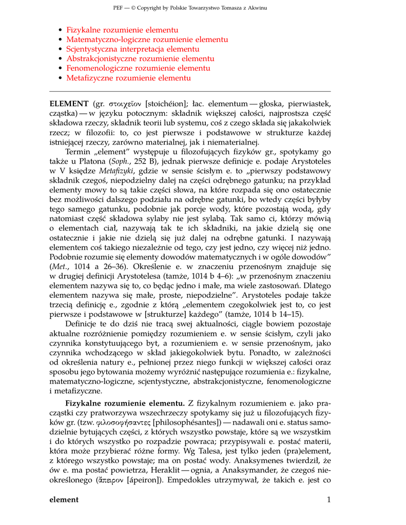 Element - Polskie Towarzystwo Tomasza z Akwinu