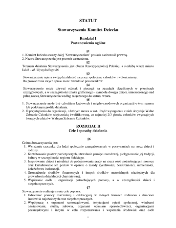 Statut - Stowarzyszenie Komitet Dziecka