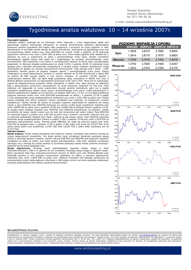 Tygodniowa analiza walutowa 10 – 14 września 2007r.