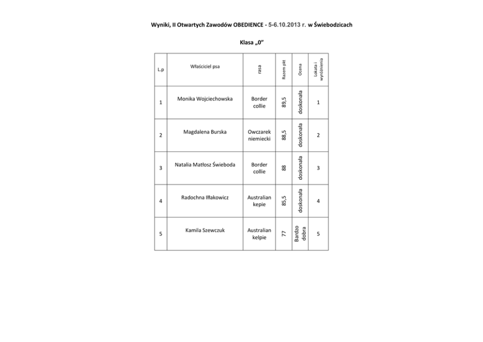 Wyniki, II Otwartych Zawodów OBEDIENCE - 5