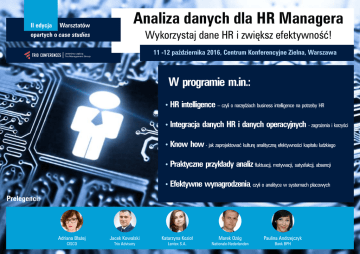 II edycja Warsztatów Analiza danych dla HR Managera Wykorzystaj dane HR i zwiększ efektywność! opartych o case studies 11 -12 października 2016, Centrum Konferencyjne Zielna, Warszawa W programie m.in.: • HR intelligence – czyli o narzędziach business intelligence na potrzeby HR • Integracja • Know danych HR i danych operacyjnych - zagrożenia i korzyści how - jak zaprojektować kulturę analityczną efektywności kapitału ludzkiego • Praktyczne przykłady analiz fluktuacji, motywacji, satysfakcji, absencji • Efektywne wynagrodzenia, czyli o analityce w systemach płacowych Prelegenci: Adriana Błażej Jacek Kowalski Katarzyna Kozioł Marek Ożóg Paulina Andrzejczyk CISCO Trio Advisory Lentex S.A. Nationale-Nederlanden Bank BPH II Analiza danych dla HR Managera Warsztaty oparte o case studies Analizuj i wykorzystuj dane HR zwiększając efektywność Twojej organizacji! 11 -12 października 2016, Centrum Konferencyjne Zielna, Warszawa Z przyjemnością zapraszamy do udziału w drugiej „Analiza danych dla HR Managera” to: edycji warsztatów poświęconych analizie danych na potrzeby · Warsztaty z obszaru analityki HR, ukazujące korzyści dla całej organizacji pracy HR Managera. · Okazja do poznania najlepszych praktyk w obszarze analiz HR · Niepowtarzalna okazja, by dowiedzieć się jak i jakie dane są analizowane Wykorzystanie potencjału posiadanych informacji, zastosowanie przez działy HR w takich organizacjach jak m.in.: BPH, Cisco, do tego rozwiązań analitycznych to działania niezbędne do Nationale-Nederlanden, Lentex, Trio Advisory i wiele innych ... określenia ról i umiejętności potrzebnych do trwałego rozwoju nowoczesnej organizacji. Obecność obowiązkowa! Bez względu na to, czy stawiasz pierwsze kroki czy prowadzisz zaawansowane analizy danych HR w Twojej rmie. Pierwsza edycja zgromadziła grono wiodących ekspertów HR i analityków kapitału ludzkiego, zapewniając doskonałą Zmiany i dynamika rynku wymagają Twojej obecności na tym wydarzeniu, gdzie w jednym miejscu spotkają się przedstawiciele rm wielu branż liczących się na rynku krajowym i międzynarodowym. platformę do dzielenia się doświadczeniami i innowacjami. To niepowtarzalna okazja do nawiązania wartościowych kontaktów biznesowych! W kolejnej edycji stawiamy zatem, na zaprezentowanie nowych Do udziału gorąco zachęcamy osoby związane z tematem analiz w HR! pomysłów i case studies, chcąc zainspirować do zastosowania zdobytej podczas warsztatów wiedzy w codziennej praktyce. Marcin Ślepowroński Project Manager M. +48 505 133 469 [email protected] www.trioconferences.pl 11 października 2016, wtorek 9.30 Poranna kawa i rejestracja użytkowników 9.50 Powitanie uczestników i rozpoczęcie 1 dnia warsztatów 10.00 13.50 • Od kontrollingu HR do HR Analytics – jak zaprojektować kulturę analityczną efektywności kapitału ludzkiego HR Intelligence – niezbędne narzędzia i procesy • Jak gromadzić i z jakich obszarów dane analityczne HR • Instrumenty i narzędzia do prowadzenia analiz HR wraz z obszarami zastosowania • Skillset – jakie zestaw cech powinien mieć analityk HR • Insight HR - przetłumacz dane na konkretne działania i rozwiązania Adriana Błażej, HR Analyst, Cisco Jak stawiać pierwsze kroki w analityce HR i się przy tym nie potknąć • Jakie problemy i pułapki może napotkać HR podczas podróży analitycznej • Jakie korzyści analityka HR może zaoferować biznesowi 14.40 Dlaczego dane są kluczem do strategicznych decyzji HR • BIG DATA - jakie dane HR gromadzić i jak je opanować 10.50 Analiza wynagrodzeń i benetów – co oferuje działom HR i biznesowi • Jak badać efektywność wynagrodzeń; gdzie szukać benchmarków • Jak analizować ankiety dotyczące wynagrodzeń, by zapewnić konkurencyjność pakietów • Jak zapewnić zewnętrzną i wewnętrzną spójność wynagrodzeń • Analityczne wartościowanie stanowisk • Jak wykorzystać analitykę w procesie podwyżkowym Marek Ożóg, Analityk HR, Nationale-Nederlanden 11.40 Przerwa na kawę 12.00 Raport płacowy Trio Advisory – case study • Podejście i struktura raportu • Metoda wartościowania stanowisk • Raport dla specycznej grupy – Sieci FMCG – historia budowania Jacek Kowalski, Konsultant, Trio Advisory 12.50 Lunch www.trioconferences.pl • Jak wyciągać wnioski z danych dostarczanych z systemów HR organizacji i efektywnie je wykorzystywać w biznesie • Jak wykorzystać dane HR przy planowaniu strategii HR 15.30 Zakończenie I dnia warsztatów 12 października 2016, środa 9.30 Poranna kawa i rejestracja 10.00 Smart recruiting – jak wykorzystać analizy procesów rekrutacji 13.50 Motywacja – jak dzięki analizom dopasować działania motywacyjne w praktyce • Czy próba przewidywania przyszłych zdarzeń ma w HR-ze sens • Jak ocenić kluczowe kompetencje i badać korelację z wynikami biznesowymi - jak • Czy to zadanie HR-u, czy HR może sobie z tym sam poradzić • Jak się do tego zabrać - od czego należy zacząć i przede wszystkim CO przewidywać stworzyć wzorcowy arkusz kompetencji • Jak zoptymalizować cykl rekrutacyjny od poszukiwań do zatrudnienia i wdrożenia w kulturę organizacji • Jak mierzyć skuteczność rekrutacji i połączyć z efektywnością działalności operacyjnej • Rola mobile i social media w nowoczesnej rekrutacji Katarzyna Kozioł, Chief HR Specialist, Lentex S.A. 14.40 Jak analizować satysfakcję pracowników • Kwestionariusz HR - jak rzetelnie dobrać pytania do kwestionariusza, aby wiarygodnie określić satysfakcje pracownika i co jaki czas przeprowadzać badanie • Jak wyznaczyć kluczowe wskaźniki satysfakcji; gdzie szukać benchmarków • Jak efektywnie mierzyć satysfakcję pracownika 10.50 Wykorzystanie analiz HR w zarządzaniu urlopami - case study • Praktyczne przykłady wykorzystania analiz w zarządzaniu urlopami na przykładzie sieci • Czy zawsze możemy lic