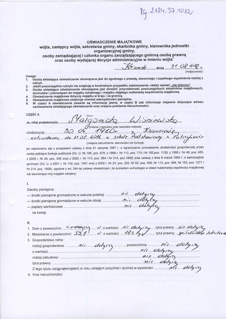 w czEsci A oswi;dczeni. z;w;rto 3a hlormacjo iawn€; w czecci B zac inromacl€ niejawnodotvczacotdresu