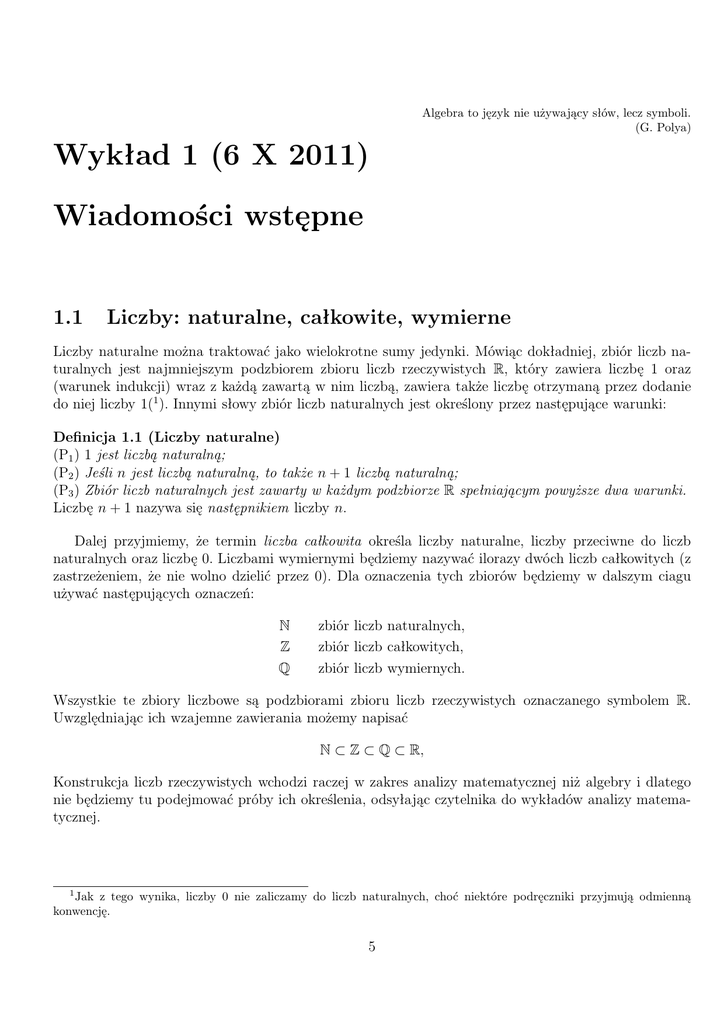 naturalnych oraz liczbę 0. Liczbami wymiernymi będziemy nazywać ilorazy dwóch liczb całkowitych (z