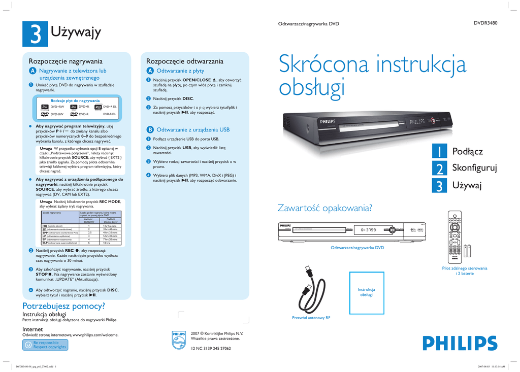 Patrz instrukcja obsługi dołączona do nagrywarki Philips.