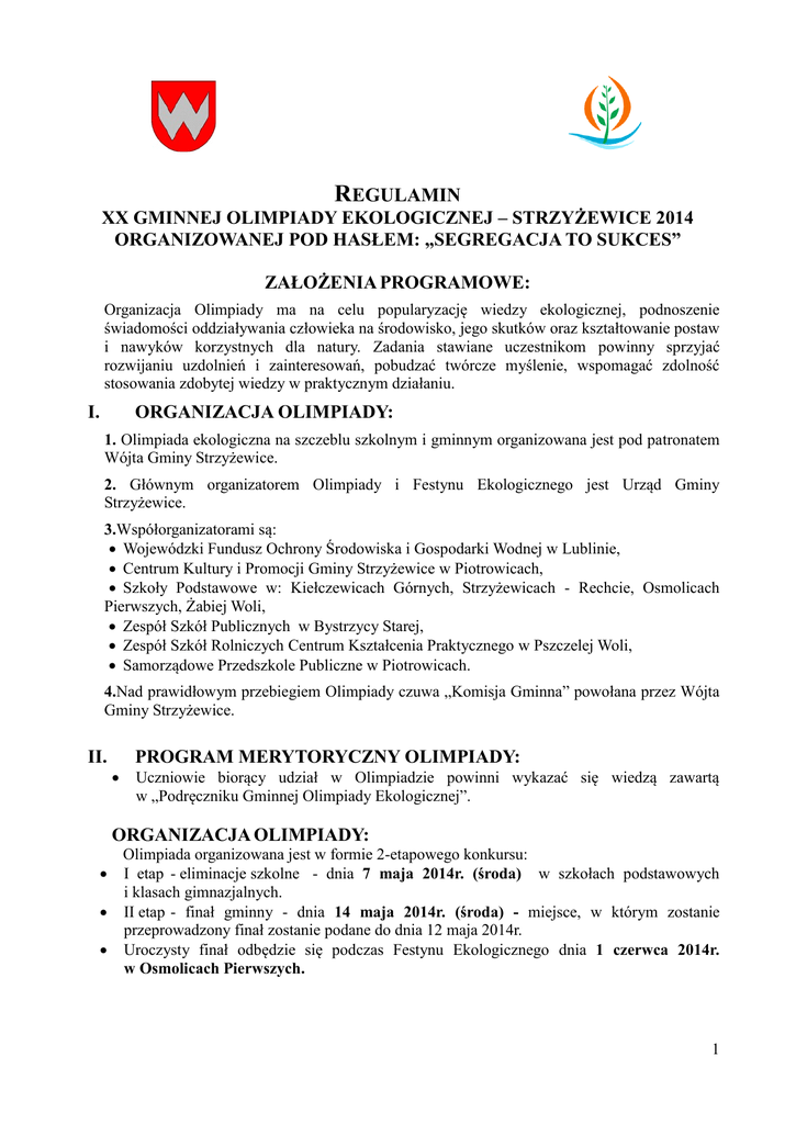 regulamin xx gminnej olimpiady ekologicznej