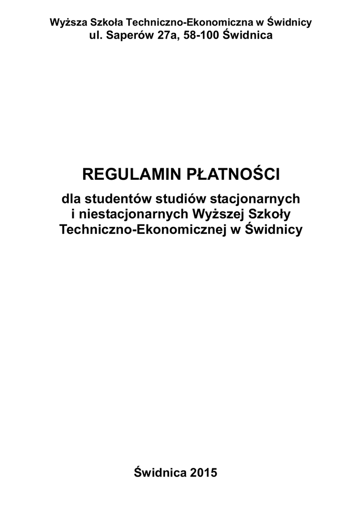 regulamin płatności - Wyższa Szkoła Techniczno