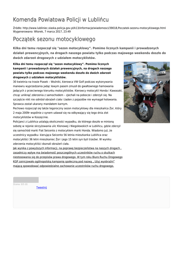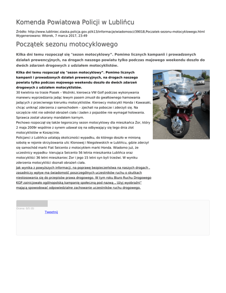 Komenda Powiatowa Policji w Lublińcu Początek sezonu