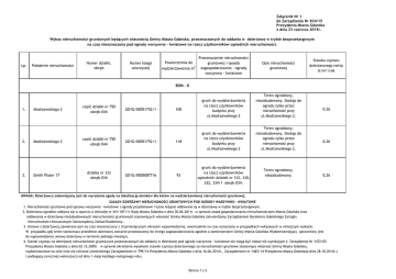 Załącznik Nr 1 do Zarządzenia Nr 834/15 Prezydenta Miasta Gdańska z dnia 23 czerwca 2015r. Wykaz nieruchomości gruntowych będących własnością Gminy Miasta Gdańska, przeznaczonych do oddania w dzierżawę w trybie bezprzetargowym na czas nieoznaczony pod ogrody warzywno - kwiatowe na rzecz użytkowników sąsiednich nieruchomości. Lp. Położenie nieruchomości Numer działki, obręb Numer księgi wieczystej Powierzchnia do wydzierżawienia m2 Przeznaczenie nieruchomości gruntowej i sposób zagospodarowania - ogrody warzywno - kwiatowe Opis nieruchomości gruntowej Stawka czynszu dzierżawnego netto zł/m²/rok BOM - 8 1. 2. 3. Modrzewskiego 2 Modrzewskiego 2 Emilii Plater 17 część działki nr 750 obręb 044 część działki nr 750 obręb 044 działka nr 333 obręb 034 GD1G/00051752/1 GD1G/00051752/1 GD1G/00050877/6 100 grunt do wydzierżawienia na rzecz użytkowników budynku przy ul.Modrzewskiego 2 Teren ogrodzony, niezabudowany. Dostęp do ogrodu tylko przez nieruchomość przy ul.Modrzewskiego 2. 118 grunt do wydzierżawienia na rzecz użytkowników budynku przy ul.Modrzewskiego 2 Teren ogrodzony, niezabudowany. Dostęp do ogrodu tylko przez nieruchomość przy ul.Modrzewskiego 2. 93 grunt do wydzierżawienia na rzecz użytkowników sąsiednich działek nr 312, 330, 332, 334/1 obręb 034. Teren ogrodzony, niezabudowany. 0,26 0,26 0,26 UWAGA: Dzierżawca zobowiązany jest do wyrażenia zgody na lokalizację domków dla kotów na wydzierżawionej nieruchomości gruntowej. ZASADY DZIERŻAWY NIERUCHOMOŚCI GRUNTOWYCH POD OGRODY WARZYWNO - KWIATOWE 1. Nieruchomości gruntowe pod uprawy warzywno - kwiatowe ( ogrody przydomowe i luźno leżące) oddawane są w dzierżawę w trybie bezprzetargowym. 2. Dzierżawa ogrodów odbywa się w oparciu o Uchwałę nr XIV/187/11 Rady Miasta Gdańska z dnia 30.06.2011r. w sprawie zasad gospodarowania nieruchomościami Miasta Gdańska oraz Regulamin oddawania w dzierżawę niezabudowanych nieruchomości gruntowych stanowiących własność Gminy Miasta Gdańska zatwierdzony Zarządzeniem Dyrektora Gdańskiego Zarządu Nieruchomości Komunalnych Samorządowy Zakład Budżetowy. 3. Umowa z dzierżawcą zawierana jest na czas nieoznaczony z trzymiesięcznym okresem wypowiedzenia, ewentualnie na czas oznaczony w przypadkach wskazanych w niniejszym wykazie. W przypadku gdy teren stanowiący przedmiot dzierżawy zostanie przeznaczony do innego zagospodarowania zgodnie z zamierzeniami Gminy Miasta Gdańska Wydzierżawiający uprawniony jest do wypowiedzenia umowy dzierżawy w terminie jednego miesiąca. 4. Stawki czynszu na dzierżawę nieruchomości gruntowych przeznaczonych do oddania w dzierżawę pod ogrody warzywno - kwiatowe nie mogą być niższe niż wynikające z Zarządzenia Nr 1472/05 Prezydenta Miasta Gdańska z dnia 02.12.2005r. w sprawie określenia wysokości stawek czynszu dzierżawnego za nieruchomości gruntowe stanowiące własność Gminy Miasta Gdańska, wydzierżawiane na cele inne niż rolnicze (zmienionego Zarządzeniem nr 799/14 Prezydenta Miasta Gdańska z dnia 16.06.2014r., Zarządzeniem nr 1465/14 Prezydenta Miasta Gdańskaz dnia 28.10.2014r.) i podlegają corocznej waloryzacji od dnia 1 maja każdego następnego roku. Strona 1 z 2 5. Prezydentowi Miasta Gdańska przysługuje prawo odstąpienia od przeprowadzenia ogłoszonego postępowania w trybie bezprzetargowym w sprawie oddania nieruchomości gruntowych w dzierżawę, w całości na poszczególne nieruchomości gruntowe, w stosunku do których pojawią się nieprzewidziane wcześniej okoliczności natury prawnej, bądź formalnej, uzasadniającej konieczność ich wycofania. 6. Oferent zainteresowany dzierżawą gruntu umieszczonego w niniejszym wykazie, w okresie podania wykazu do publicznej wiadomości, obowiązany jest złożyć ofertę, w której winny być zawarte następujące informacje: 1) oznaczenie nazwy oferenta i jego siedziby (w przypadku osób fizycznych – imię i nazwisko oferenta oraz jego adres zamieszkania na pobyt stały), 2) wskazanie nieruchomości gruntowej, o którą ubiega się oferent, 3) braku zobowiązań finansowych w stosunku do Gminy Miasta Gdańska oraz Gdańskiego Zarządu Nieruchomości Komunalnych Samorządowy Zakład Budżetowy, 4) oferta winna być podpisana przez osobę/osoby uprawnioną/uprawnione do składania oświadczeń woli w imieniu oferenta, w przypadku pełnomocników - złożenie dokumentów pełnomocnictwa. 5) Oferent zainteresowany dzierżawa większej liczby nieruchomości gruntowych z przeznaczeniem na ogrody umieszczonych na wykazie, zobowiązany jest do złożenia odrębnych ofert na każdą z wybranych przez siebie nieruchomości gruntowych. 7. Oferty w formie pisemnej mogą być składane: 1) w Dziale Nieruchomości ul. Dyrekcyjna 6, 2) w Biurach Obsługi Mieszkańców Nr 1,2,4,7,8,9 8. Ujawnienie faktu zatajenia przez Oferenta posiadania zaległości czynszowych z tytułu najmu lub dzierżawy lokali stanowiących własność Gminy Miasta Gdańska, w tym również posiadania zadłużenia lokali, których Oferent nie jest już najemcą lub dzierżawcą, spowoduje odrzucenie oferty tego Oferenta. Ujawnienie okoliczności, o których mowa wyżej już po zawarciu umowy z takim Oferentem, skutkuje utratą uprawnień do dzierżawy gruntu objętego postępowaniem i rozwiązaniem umowy dzierżawy. 9. W przypadku wpłynięcia kilku ofert, oferentów zaprasza się na ustną licytację stawki czynszu dzierżawnego w celu wyłonienia najkorzystniejszej oferty. 10. Oferenci, którzy złożyli oferty na dzierżawę nieruchomości gruntowych zawiadamiani są pisemnie o terminie, godzinie i miejscu przeprowadzenia ustnej licytacji stawki czynszu dzierżawnego. Zawiadomienia wysyłane są za zwrotnym potwierdzeniem odbioru nie później niż na 7 dni przed wyznaczonym terminem ustnej licytacji. Nie przystąpienie oferenta do ustnej licytacji stawki czynszu dzierżawnego w terminie oznaczonym w zawiadomieniu jest równoznaczn