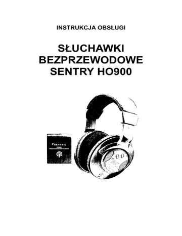 INSTRUKCJA OBSŁUGI SŁUCHAWKI BEZPRZEWODOWE SENTRY HO900 Zasady bezpieczeństwa: • Aby uniknąć uszkodzenia słuchu i/lub sprzętu audio, proszę zmniejszyć poziom głośności we wszystkich urządzeniach (słuchawki oraz źródło dźwięku) przed podłączeniem słuchawek; • Nie jest zalecane korzystanie ze słuchawek w czasie jazdy na motocyklu, rowerze czy też operowaniu maszynami; • Nie jest zalecane zbyt długie słuchanie na wysokim poziomie głośności – może to grozić utratą słuchu; Zawartość pudełka: 1. Słuchawki z wbudowanym odbiornikiem 2. Nadajnik 3. Kabel RCA mini Jack 4. przejściówka RCA mini Jack 5. przejściówka mini Jack duży Jack Kontrolki nadajnika: 1. wejście audio – mały jack 2. włącznik/wyłącznik - ON/OFF 3. wskaźnik LED – dioda kontrolująca zasilanie 4. wejście na zasilacz DC 5. miejsce na baterie Kontrolki odbiornika – słuchawek: 1. Przycisk RESET (rozpoznaje słuchawki) 2. Przycisk SCAN (poszukuje sygnał z nadajnika) 3. Kontrola poziomu głośności 4. wskaźnik LED – dioda kontrolująca zasilanie 5. miejsce na baterie Uruchomienie urządzenia: Nadajnik: 1. Otwórz pokrywę schowka na baterię na nadajniku i umieść tam jedną baterię 9V. UWAGA: można użyc także zasilacz 12V AC/DC. 2. Włącz nadajnik za pomocą włącznika (ON/OFF) – przestaw na pozycję ON – powinna zaświecić się czerwona lampka. 3. Podłącz nadajnik do źródłowego urządzenia audio, wykorzystując dołączone w zestawie kable oraz przejściówki (w razie potrzeby) Słuchawki = odbiornik: 1. Otwórz pokrywę schowka ba baterie na słuchawkach i umieść tam 2 baterie typu AAA – tzw. „ małe paluszki”. Upewnij się, że są one włożone w odpowiedni sposób i zamknij pokrywę. 2. Włącz słuchawki za pomocą pokrętła odpowiedzialnego za poziom głośności – pamiętaj o tym żeby od razu nie ustawić maksymalnego poziomu głośności, ponieważ może to uszkodzić słuch lub sprzęt. Jeżeli urządzenie jest włączone – sygnalizuje to dioda umieszczona na jednej ze słuchawek, świecąc na czerwono. Operowanie urządzeniem: 1. Upewnij się, że wszystkie kable i/lub przejściówki są prawidłowo podłączone do urządzenia źródłowego oraz że urządzenie źródłowe ustawione jest na odpowiedni poziom głośności, tzn. nie za cicho i nie za głośno. 2. Kabel łączący nadajnik z urządzeniem źródłowym działa jako antena nadajnika. Dla najlepszej wydajności, umieść nadajnik najdalej jak to możliwe od urządzenia źródłowego – na tyle na ile pozwala długość kabla. 3. Włącz słuchawki za pomocą pokrętła kontrolującego poziom głośności. 4. Kiedy już włączysz słuchawki – najpierw wciśnij przycisk RESET, aby nadajnik mógł zlokalizować słuchawki, a po chwili wciśnij przycisk SCAN. Słuchawki pełnią rolę odbiornika, który w tym momencie przeszuka częstotliwości od najniższej do najwyższej, w celu uzyskania najlepszej jakości dźwięku. Transmisja dźwięku rozpocznie się po wyszukaniu optymalnej częstotliwości. UWAGA: Jeżeli sygnał nadajnika zakłóca lub jest zakłócany przez jakieś inne urządzenie elektryczne – możesz usłyszeć różnego rodzaju zniekształcenia takie jak szumy, przesterowany dźwięk. Jeżeli to się wydarzy – proszę podejść bliżej nadajnika, wcisnąć RESET a później SCAN. Rozwiązywanie problemów: Problem 1: Nie ma dźwięku. Krok 1: Upewnij się, że nadajnik jest umiejscowiony jak najdalej od urządzenia źródłowego – na tyle na ile umożliwia to kabel. Krok 2: Sprawdź czy nadajnik jest włączony. Krok 3: Sprawdź czy są włączone słuchawki. Krok 4: Baterie w nadajniku oraz w słuchawkach mogą być już rozładowane. Wymień baterie i sprawdź czy problem nadal istnieje. Krok 5: Upewnij się że źródłowe urządzenie audio jest włączone i że wszystkie kable są prawidłowo podłączone. Problem 2: Diody kontrolujące prawidłową pracę urządzeń nie świecą się na czerwono. Krok1: Upewnij się, że baterie zarówno w słuchawkach jak i nadajniku są sprawne i prawidłowo umiejscowione w urządzeniach. Problem 3: Sygnał audio jest przesterowany. Krok 1: Upewnij się, że nadajnik jest umiejscowiony jak najdalej od urządzenia źródłowego – na tyle na ile umożliwia to kabel. Krok 2: Baterie mogą być już zużyte. Zainstaluj nowe baterie. Krok 3: W pobliżu może działać inne urządzenie elektryczne, które powoduje konflikt w przekazie sygnału. Umieść nadajnik w innym miejscu, jak najdalej źródeł zakłóceń jak możliwe. Wciśnij przycisk RESET, a następnie SCAN w poszukiwaniu czystego sygnału. Problem 4: Słuchawki nie są w stanie odnaleźć sygnału audio. Krok1: Możliwe że przekroczyłeś/aś odległość na jakiej działają słuchawki. Spróbuj podejść bliżej nadajnika a urządzenie powinno działać prawidłowo. Specyfikacja techniczna: Nadajnik: Częstotliwość: 49.85MHz Zasilanie: bateria 9V lub zasilacz AC/DC 12V Zasięg działania: do 100 stóp (ok. 30 metrów) Sygnał wejściowy: maksymalnie 500mV Słuchawki – odbiornik: Częstotliwość: 48-52MHz Zasilanie: 2 baterie typu AAA – 3V (2x1.5V)