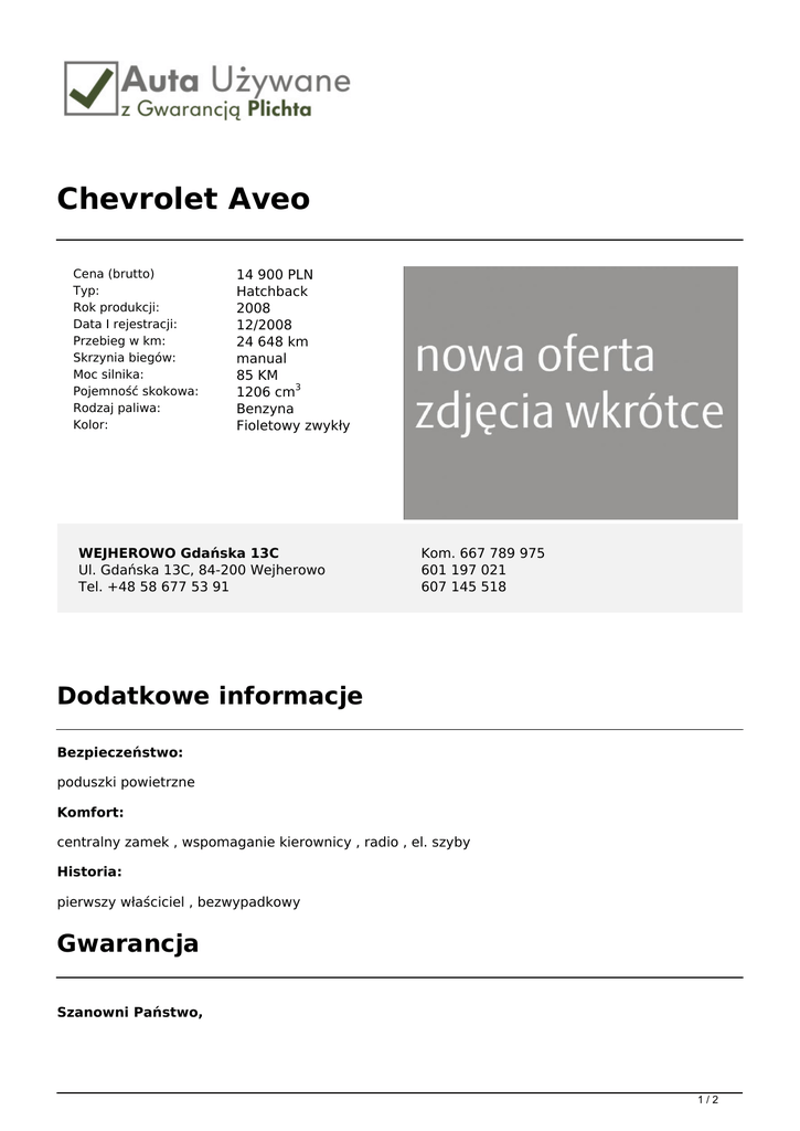 Chevrolet Aveo - Auta używane z gwarancją Plichta